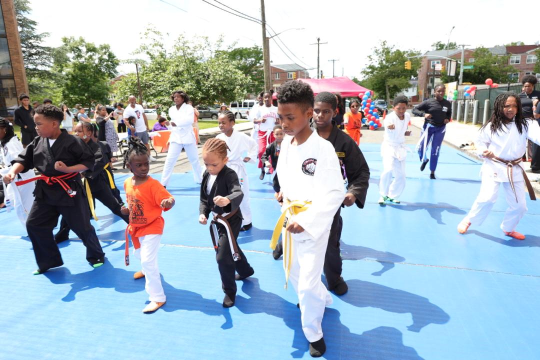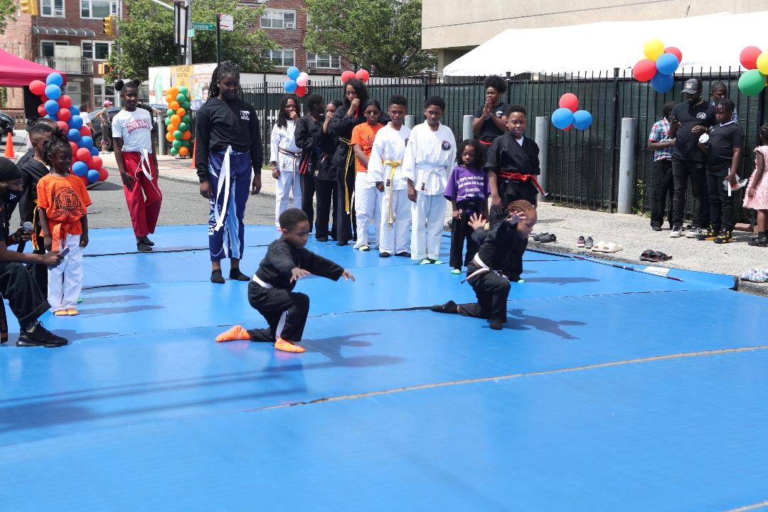 The event featured a live DJ and various activities and performances, including karate demonstrations and a Zumba performance by the H.E.S. after-school step dance team.