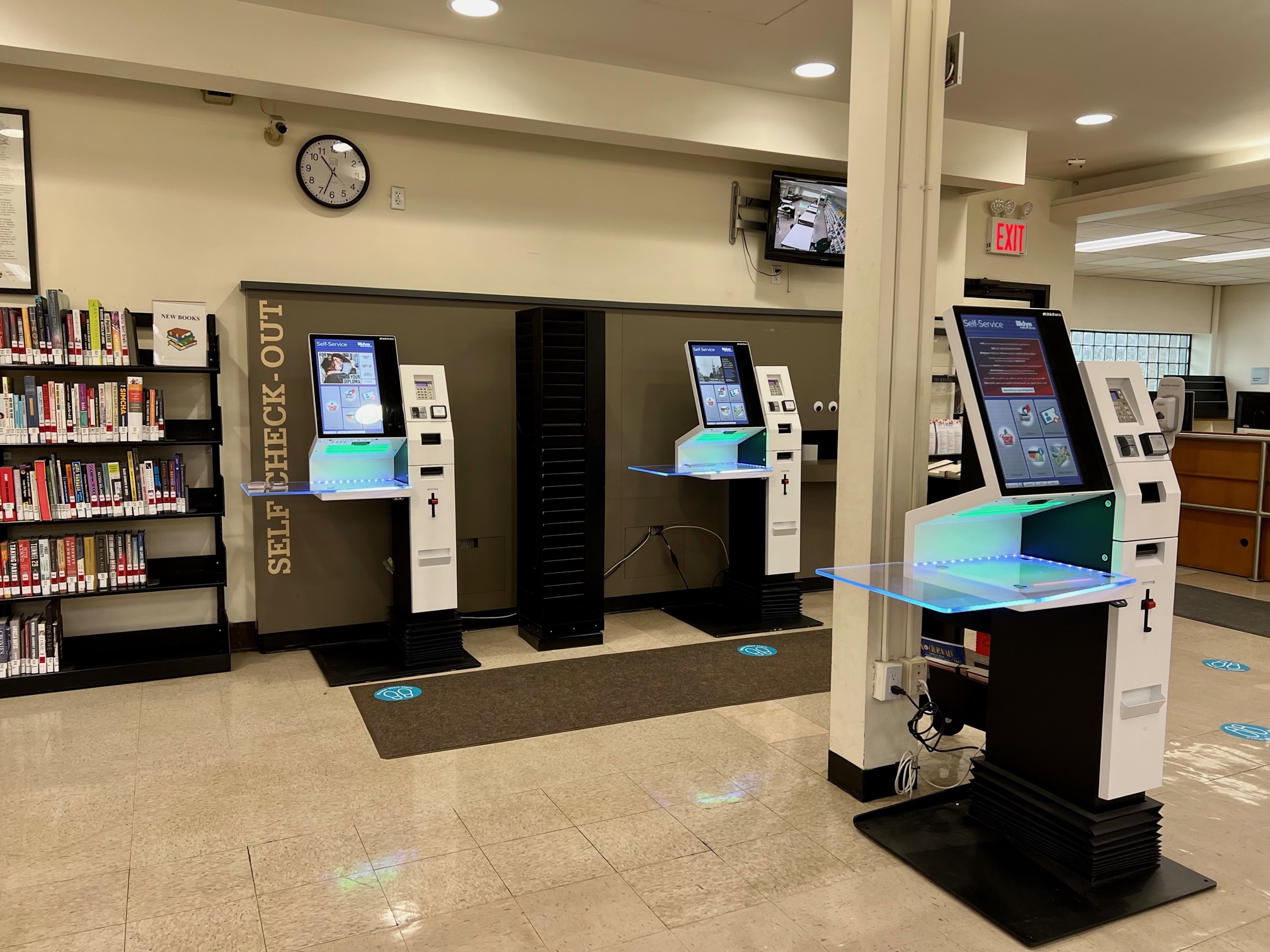 New construction smell from the finished roof wafted in the air as visitors were greeted with a bright, clean and modern-looking interior when the library doors reopened at 10 a.m. for browsing, borrowing and computer use. Patrons could check out books using the self-service kiosks or by downloading the BPL app and scanning the barcode from any book cover for contactless borrowing.
