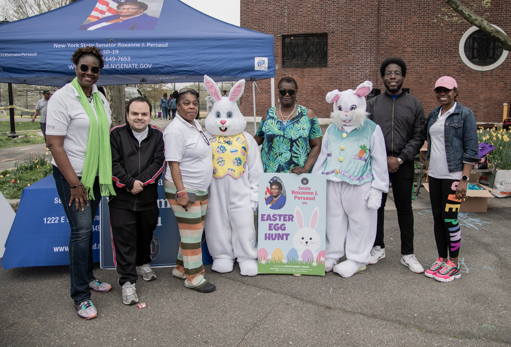 Although the weather forecast predicted rain and clouds, that didn’t stop kids on the hunt for Golden Eggs, hidden among 5,000 Easter Eggs in Canarsie Park, at State Senator Roxanne J. Persaud’s SD 19 Easter Egg Hunt on Saturday, April 15th. The original event, which was scheduled for April 1st, was postponed due to rain.