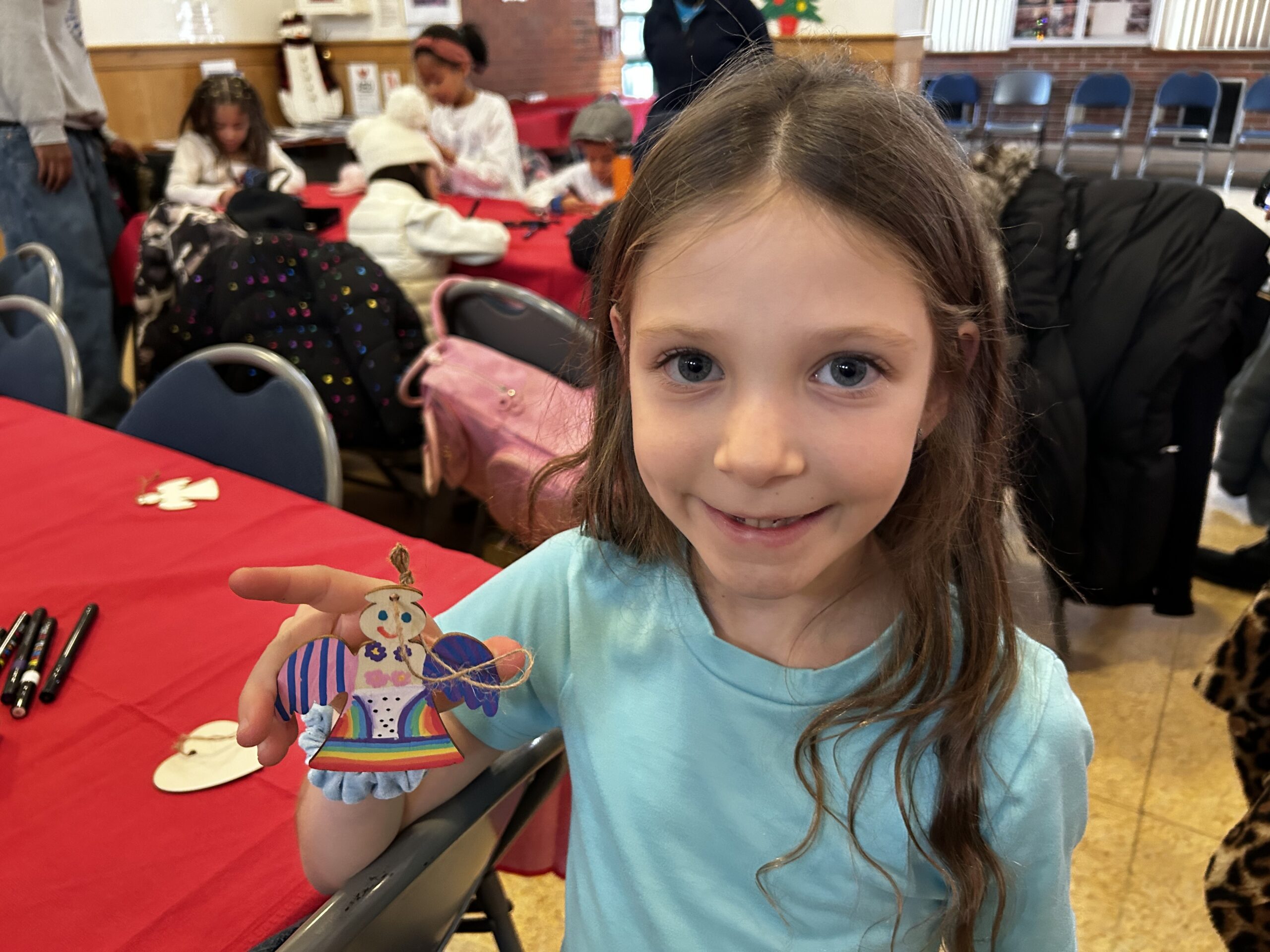 Children and families decorated wooden angel ornaments to place on trees outside and inside the John Malone Community Center, located at 2331 Bergen Avenue, on Wednesday, December 17th, at the 2nd Annual Tree Lighting in memory of a beloved neighborhood icon, Terri Cadet-Donald. The event also marked the 1st Annual Terri’s Toy Drive.