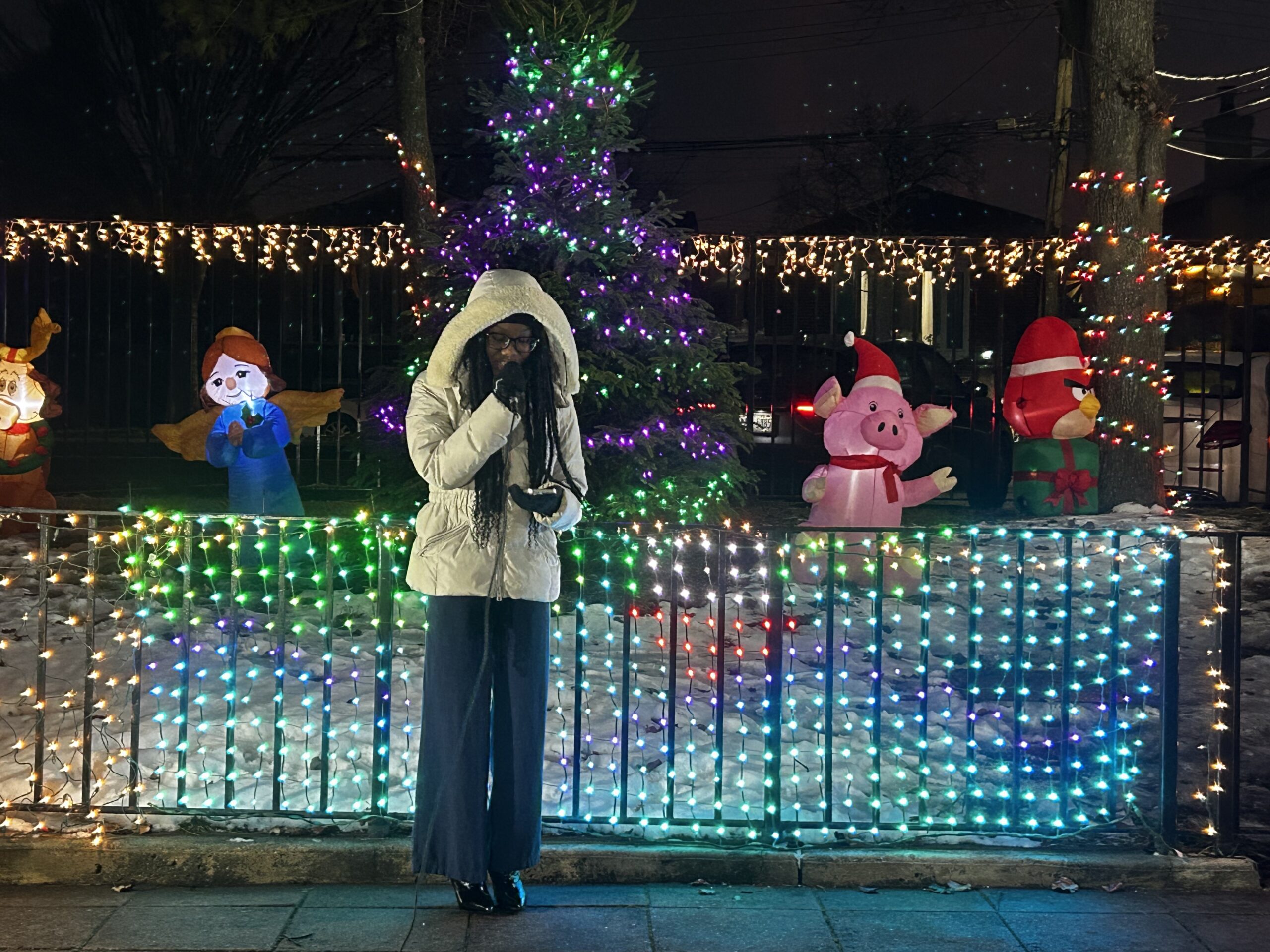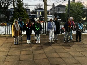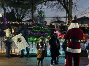 Just as the sun was setting, Santa led everyone outside to the fenced-off area around the vibrant eight-foot tree that was dedicated to Cadet-Donald last year. The Millennium students from P.S. 312 Bergen Beach School delighted the crowd with their “Jingle Bells” chant and dance and had everyone singing along to Mariah Carey’s “All I Want for Christmas” and their holiday song mash-up.
