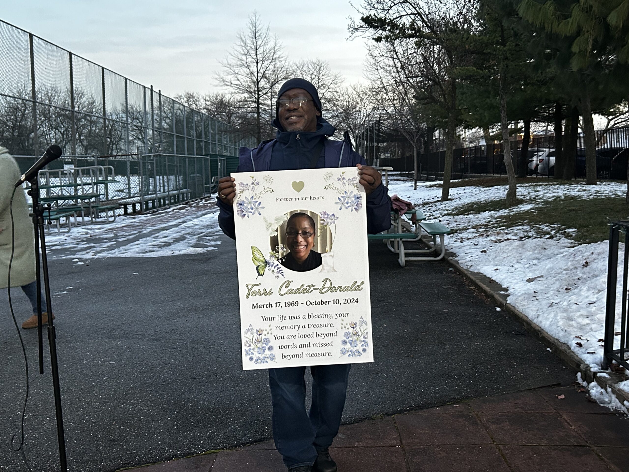 Before everyone returned inside the community center for hot chocolate, Cadet-Donald’s daughter, Kalli Donald, read a poem that she wrote about her beloved mother and how much she continues to miss her. Her heartfelt poem moved the crowd to tears.