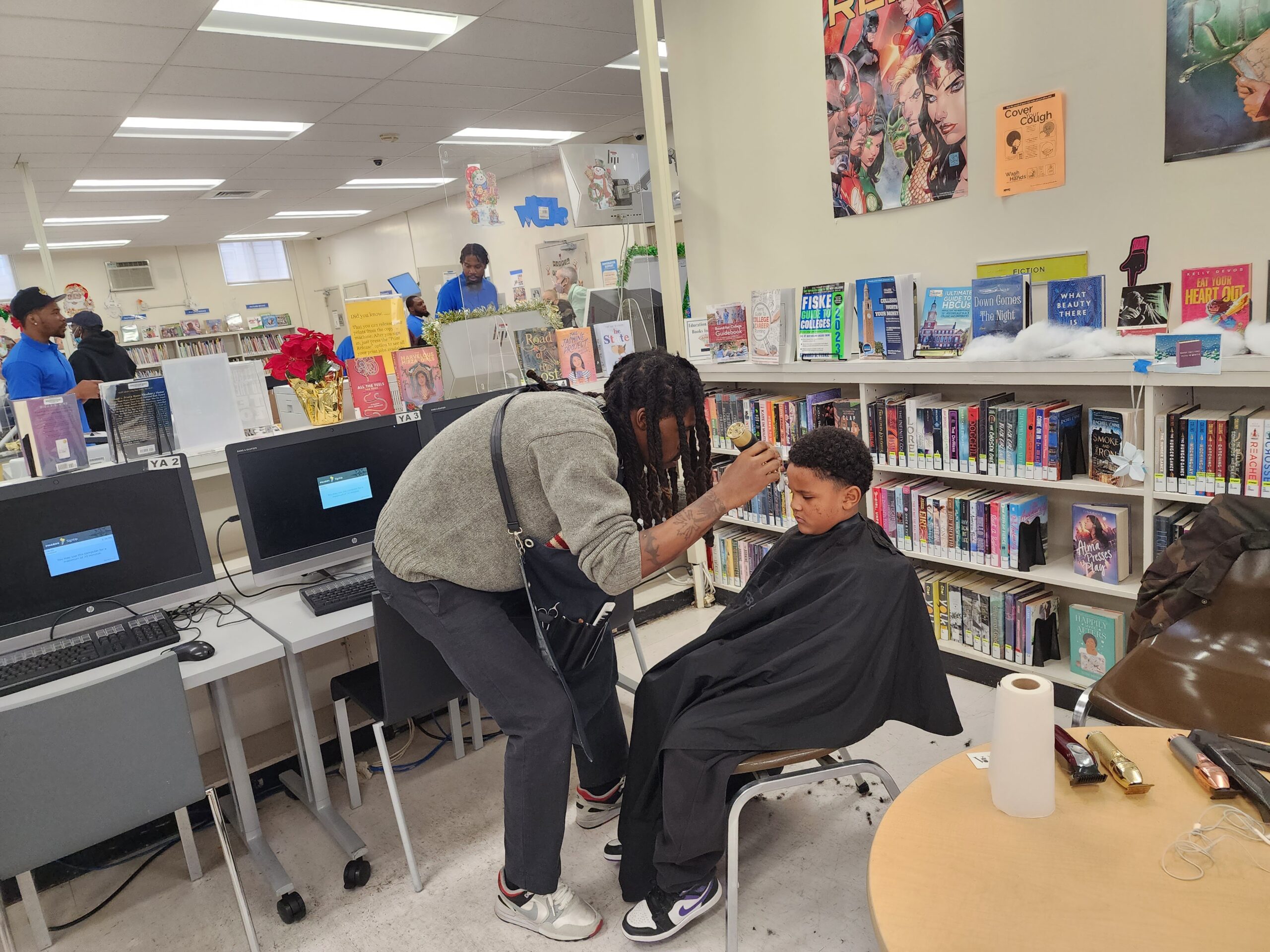 On Saturday, December 17th, supported by his parents and team from Black Chip Kin, Edwards hosted his 7th Holiday Toy Distribution at the Canarsie Library, located at 1580 Rockaway Parkway. In addition to hundreds of new, unwrapped toys, the group gave away free haircuts, performed right there in the library, and printed, decorated and distributed tee shirts, also on site. Additionally, there were live podcasts, face painting, raffles and dance competitions in which the children participated, allowing the winners an opportunity to acquire extra toys and lots of food and beverages.