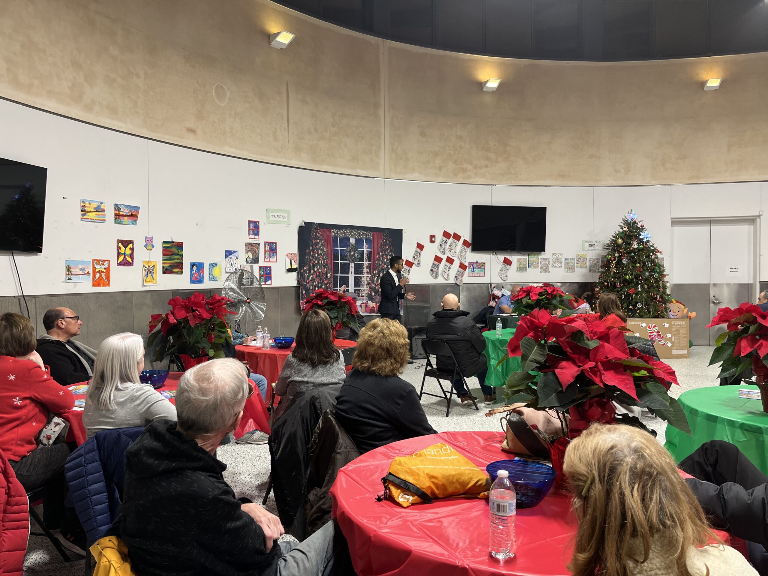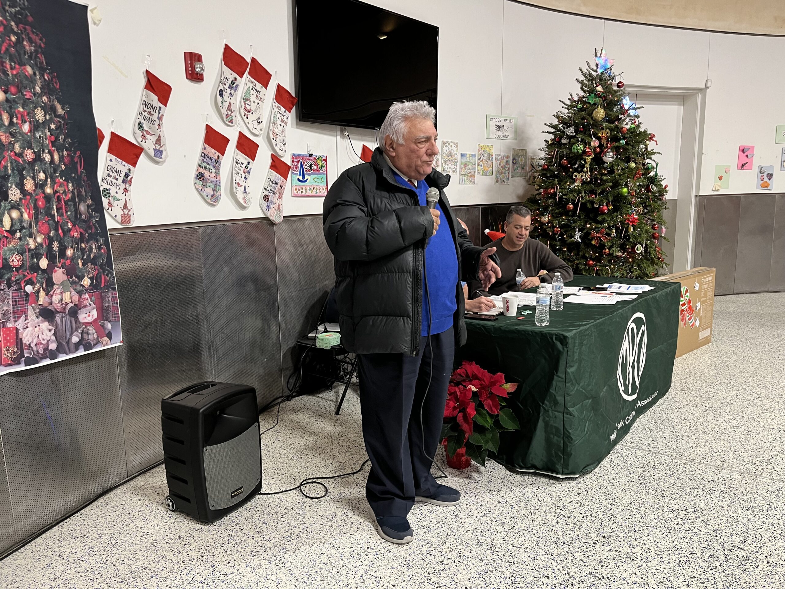 Brooklyn Borough President Antonio Reynoso stopped by the December meeting of the Marine Park Community Association to discuss the hotly-contested Department of Transportation (DOT) initiative to install parking meters on Quentin Road. The community association also celebrated with a holiday party at its final meeting of the year.