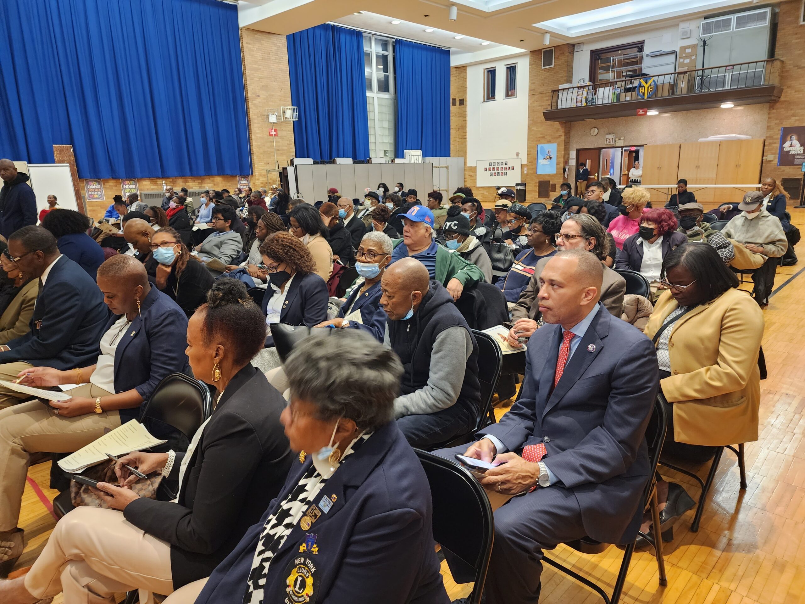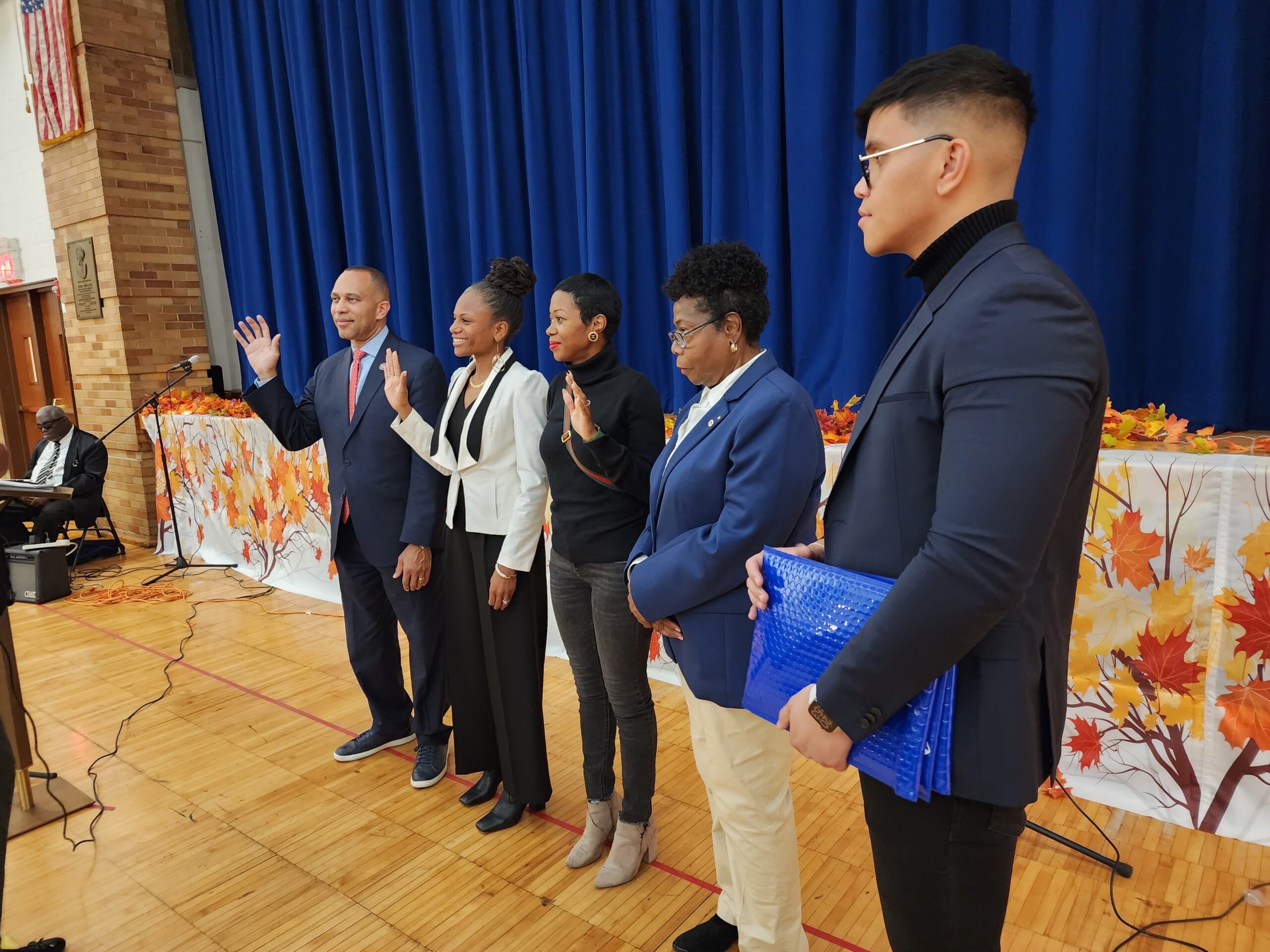 Before the service concluded, Lion Ingrid Andrews-Campbell, District Governor for Region 20 K-1 (Brooklyn and Queens), performed what is arguably the most historic induction (of Lions) for the Region. Five new members, including esteemed Congressman Hakeem Jeffries, were added to the Canarsie Lions’ roster. “I’m humbled to induct Congressman Hakeem Jeffries. It is liberating to know that such a powerful man has the desire to serve and give back to the Brooklyn community. While he could have been home celebrating his rise in Congress, he took time to attend the 40th Annual Thanksgiving Service with Lions who were giving away baskets to the community,” the District Governor said. “This speaks to the type of person who, although powerful, is still humble to be among his people. He showed that he has the passion for community, and he accepted on the spot, that he wanted to make a difference. As my team for this year says, he was willing to ‘Lead Today For A Better Tomorrow.’”