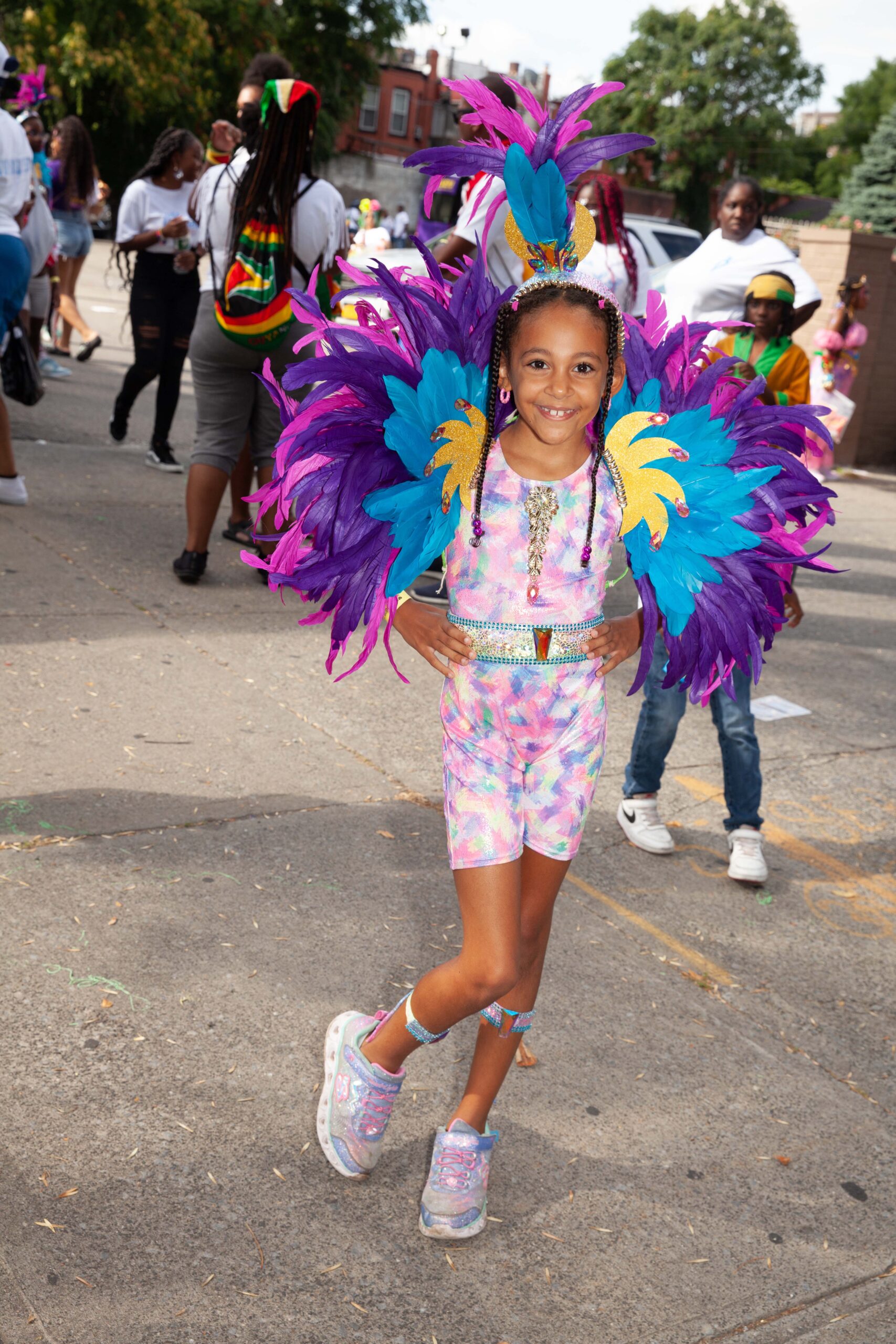 The New York Children’s Carnival is back! After a two-year hiatus as a result of COVID-19, the Children’s Carnival Parade finally returned to the streets of Brooklyn on Saturday, September 3rd. The Junior Carnival Parade is a smaller version of the West Indian Day Parade, held on Labor Day. All of the young participants assembled on the corner of Kingston Avenue and St. John’s Place and marched for a few blocks before ending at the Brooklyn Children’s Museum. The parade route was not as long as Monday’s route, but no one seemed to mind. There were smiling young people in costumes everywhere!