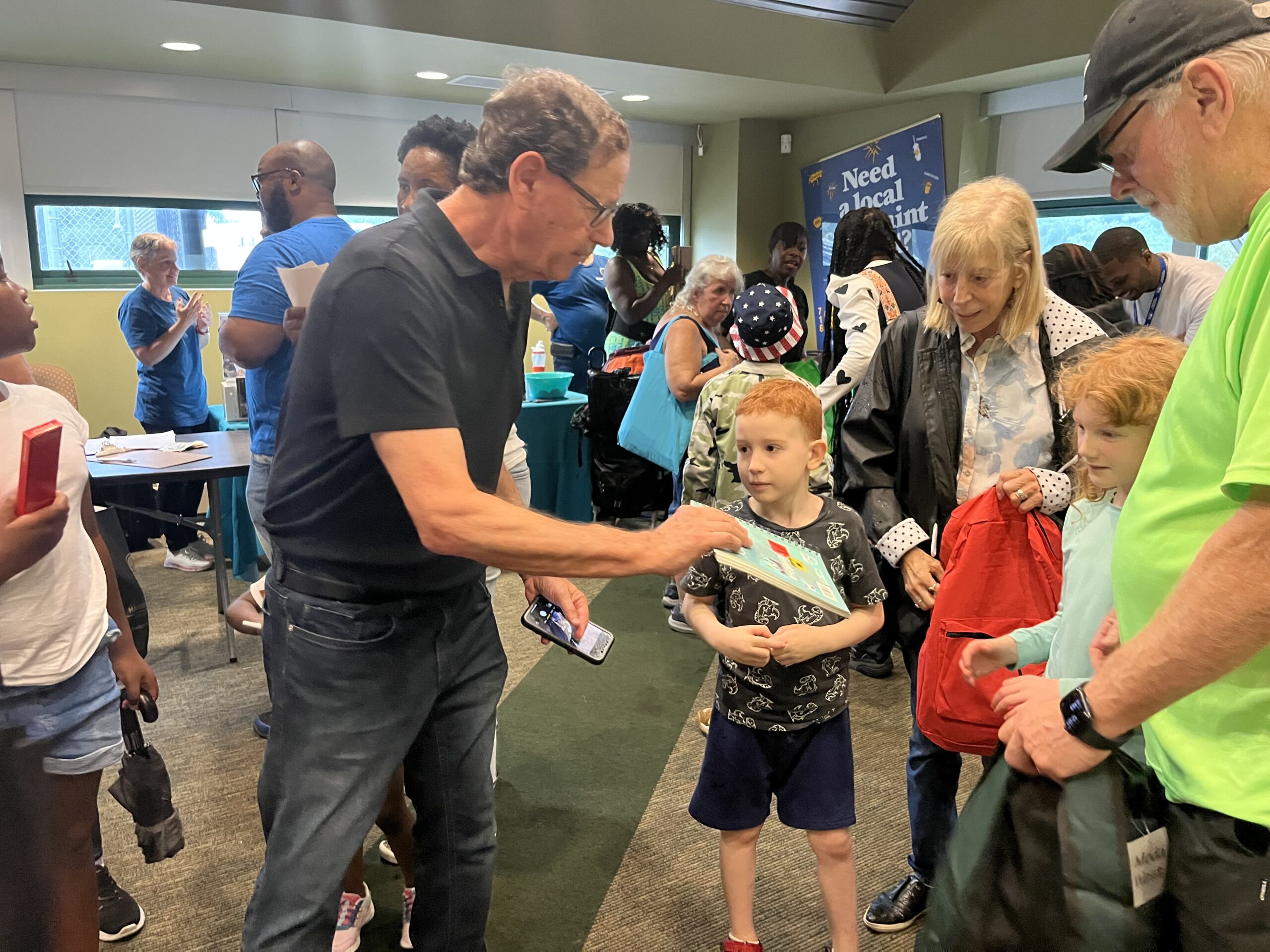 The board’s meeting room was crowded with locals picking up free backpacks, tote bags and more. One resident, CB 18 appointed member Jamaal Carryl, was there both in a professional role and with his wife and children.