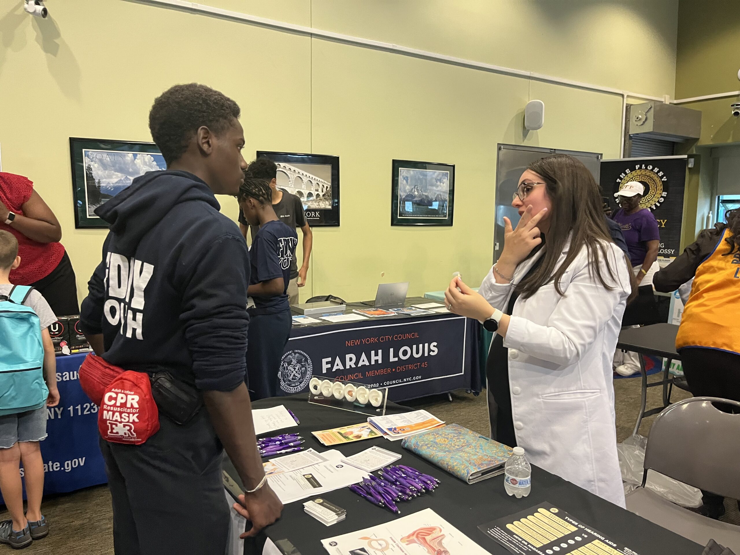The event, which was supposed to be outdoors but got moved inside due to the rain, featured around 20 booths from local and governmental organizations, each giving out information on what they offer the community, along with free merch.