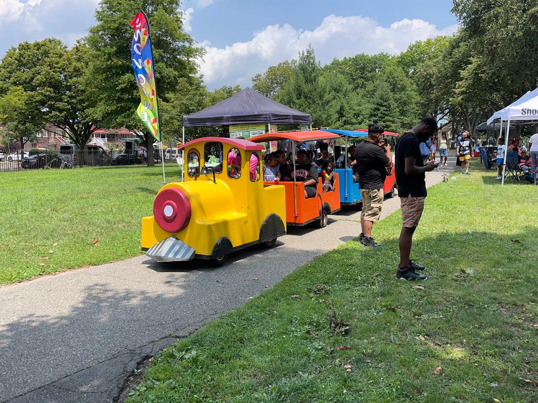 On Thursday, July 20th, Pop Smoke Day, the community gathered in Canarsie Park, and it was a day filled with wholesome memories. The park had activities for everyone, including basketball, volleyball, interactive games for children and a train ride for the little ones. The “Brooklyn Royal Diamonds,” a dance troop from Canarsie, kicked off the basketball games with a special production the young women had been working on for weeks. The girls shined in their pink dance gear and said they were so happy to be back to perform for this event. Patricia, a new Canarsie resident, heard about the event from her teenaged daughter, who didn’t realize her mother knew Pop Smoke’s music. Tearing up while speaking with the Canarsie Courier because she was a Pop Smoke fan, Patricia said it was important to come out and support her community and remember his legacy.
