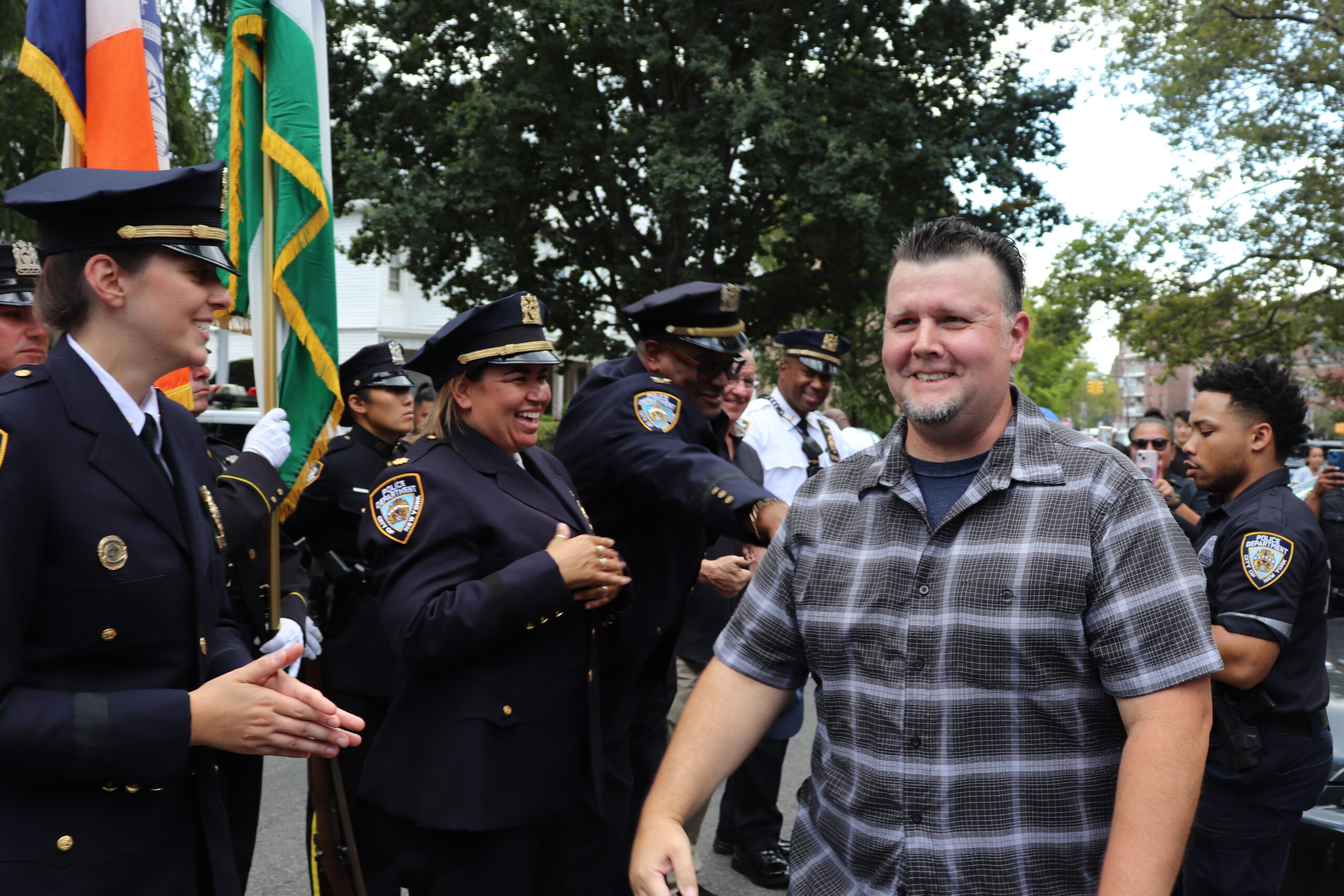 Members of the NYPD, along with family and friends, gathered outside the 63rd Precinct, 1844 Brooklyn Avenue, on Wednesday, August 31st to wish Sergeant Michael McGill a happy retirement and thank him for his tireless dedication to the NYPD and to the citizens of New York City.
