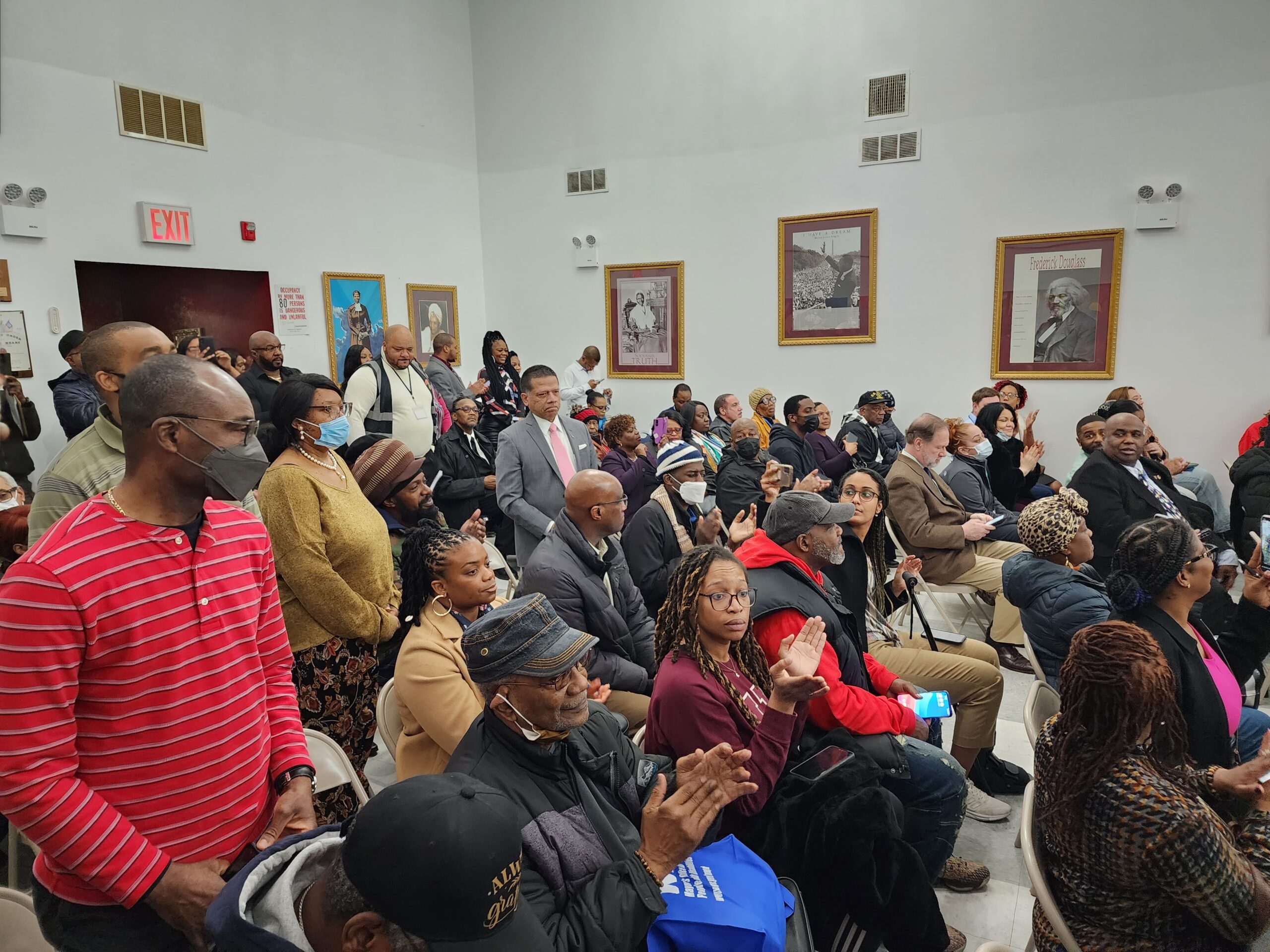 Rep. Jeffries announced that he secured $1 million in funding for BVSJ’s Incarcerated Veterans Transitional Program, through the Government Funding Law. The congressman told the jam-packed room of veterans “in the last spending agreement that was finally reached at the end of December, one of the organizations that I fought to include in that Community Project was the Black Veterans for Social Justice, in connection with the initiative to try to make sure that formerly incarcerated veterans could get back on their feet.” Turning to BVSJ staff standing beside him, Jeffries continued, “So, in connection with the Incarcerated Veterans Transitional Program, it is my honor to present this check to Black Veterans for Social Justice, for $1 million!”