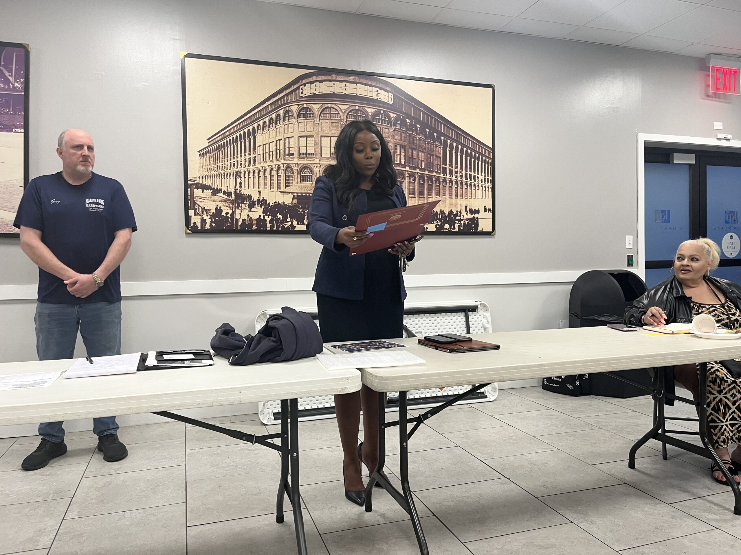 Attendees complained of a similar issue – trucks and trailers parked where they’re not supposed to be or driving down “no-trucks-allowed” streets. Both the precinct and a representative of the community board said they would look into these issues.