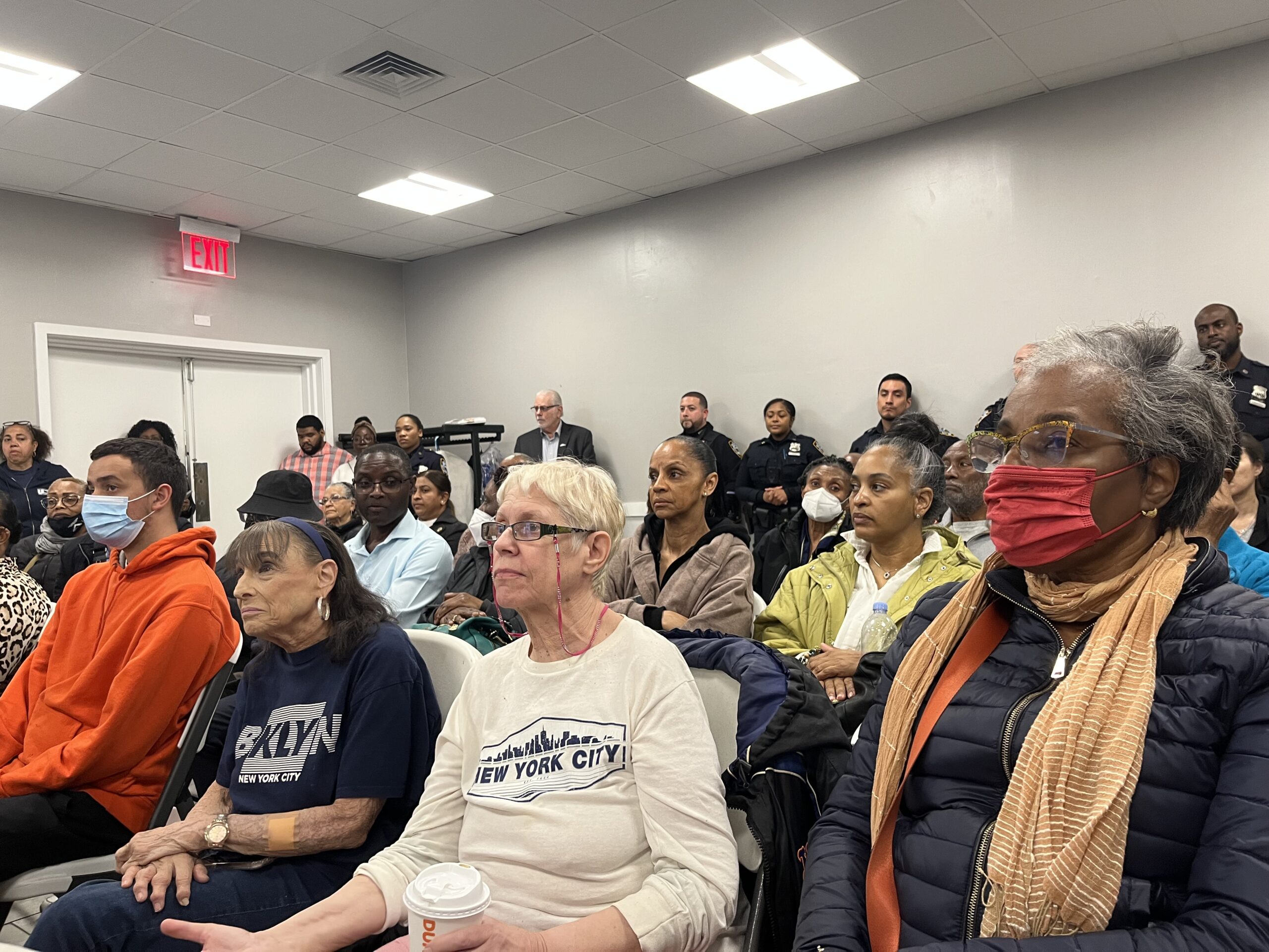 A group of attendees complained about a man who lives in the Philip Howard Co-op Buildings at 1655 Flatbush Avenue. He walks around the complex naked or in underwear and will harass other residents by banging on or carving x’s into apartment doors. The officers said they would look into the situation.