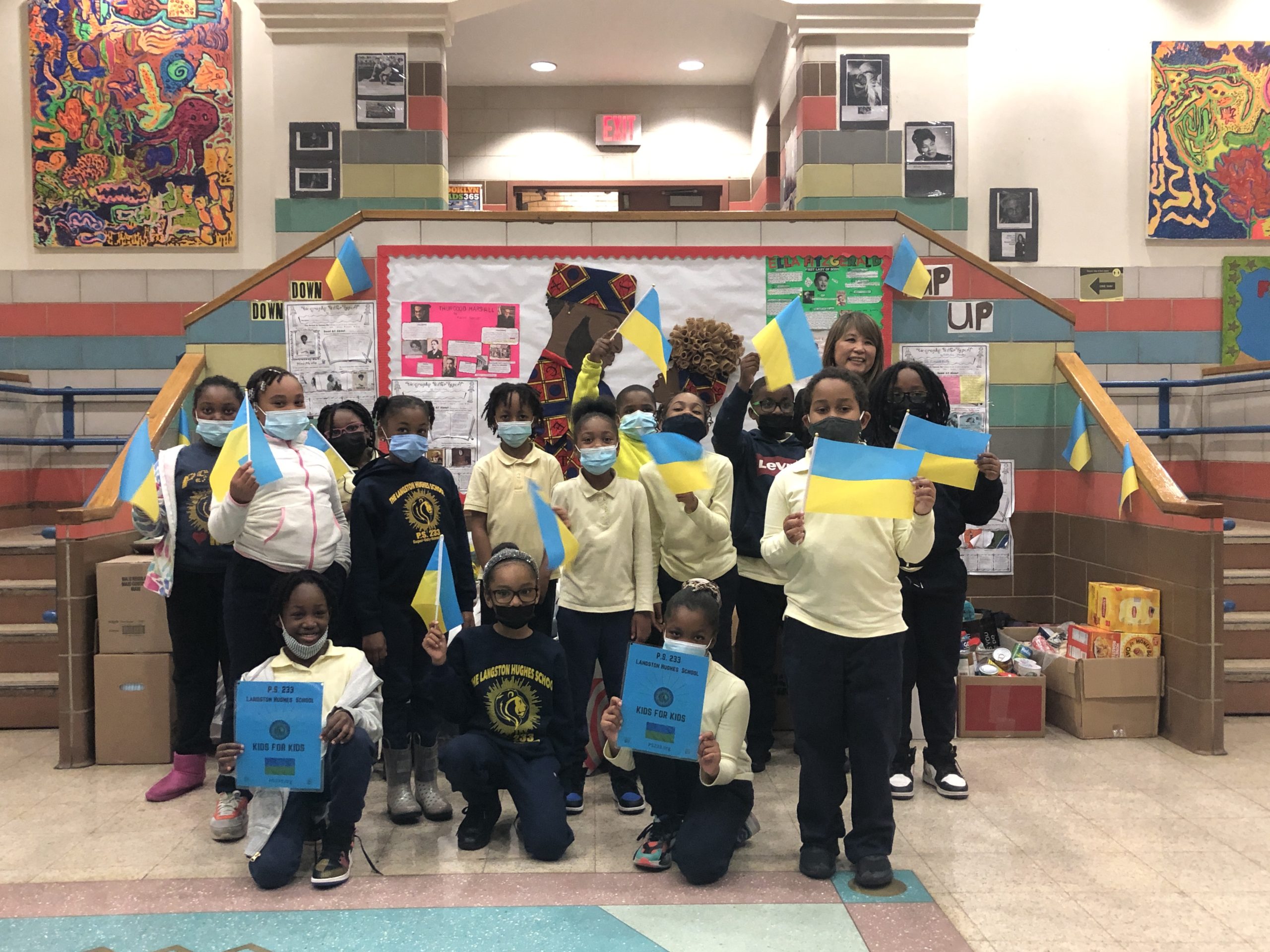 Last week, the caring students at P.S. 233 were busy collecting a plethora of donated items for their “Kids for Kids” project. Donations, including clothes, toys, books, baby formula, medical supplies and hygiene products, will soon arrive in Poland for Ukrainian children. Monetary donations were also accepted. Homemade cards and letters were sent to families as well. All of the donated goods were sorted out by the Parent Teachers Association and a few days later hauled away by volunteers and then shipped to Poland.