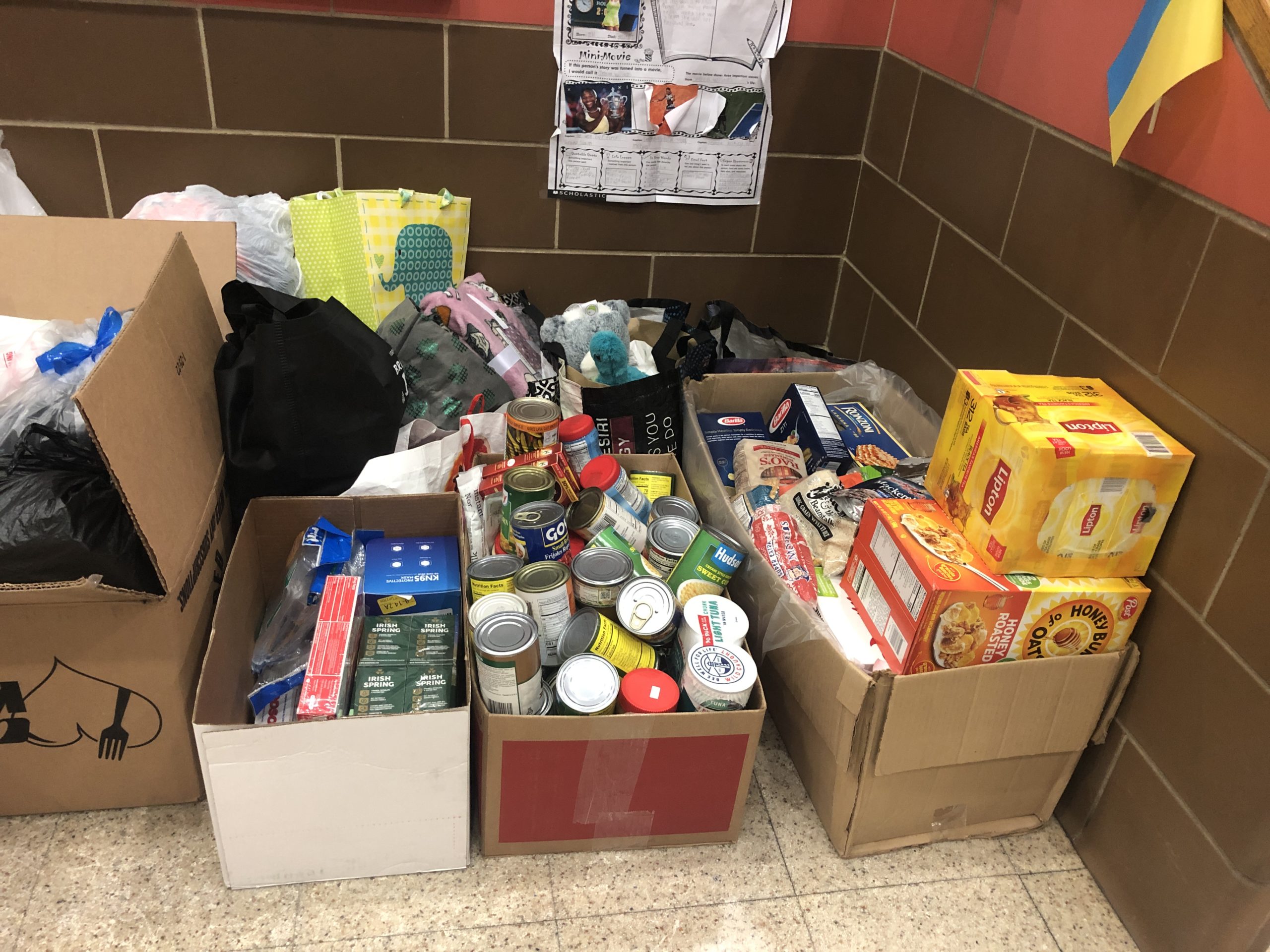 Teaching local students about the hardships suffered by children around the world is not a difficult task. When you see the boxes and bags of non-perishable goods packed into the lobby of P.S. 233 Langston Hughes School, 9301 Avenue B, you can clearly see that hundreds of compassionate youngsters want to help Ukrainian refugees get some of the simplest supplies they need to survive after escaping the war ravaging their homeland.