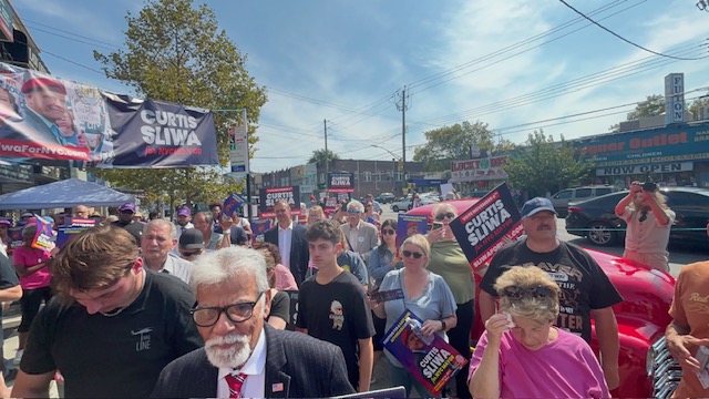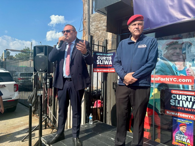Assemblywoman Jamie Williams, who represents the 59th District, brought down the house with her official endorsement, declaring, “Curtis has stood with our community from Day One — through every rally, every protest, every struggle. He’s not just running for mayor; he’s been fighting for us all along.” She was joined by Assemblyman Michael Novakhov, who praised Sliwa as the city’s best hope to restore safety, quality of life and an end to corruption. “Don’t listen to the polls,” Novakhov urged, pointing out their historical inaccuracy. “We have the momentum to win this election!”