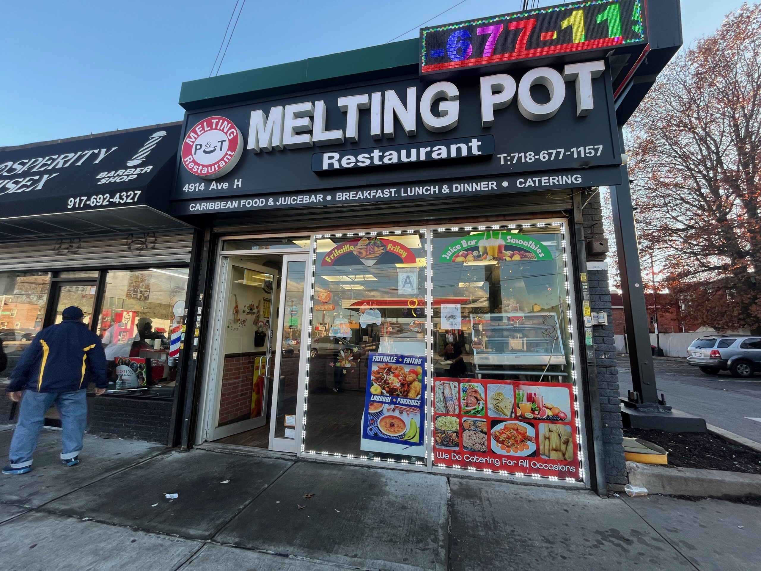 The Melting Pot Restaurant (718-677-1157) is a Caribbean takeout eatery located at 4914 Avenue H. Open daily starting at 8 a.m., the establishment sells fresh baked bread and pastries, fresh squeezed juices, cakes and a host of Haitian cuisine, including legume, bouillon, soup joumou, fritay, mushroom rice, pork, goat and salads.