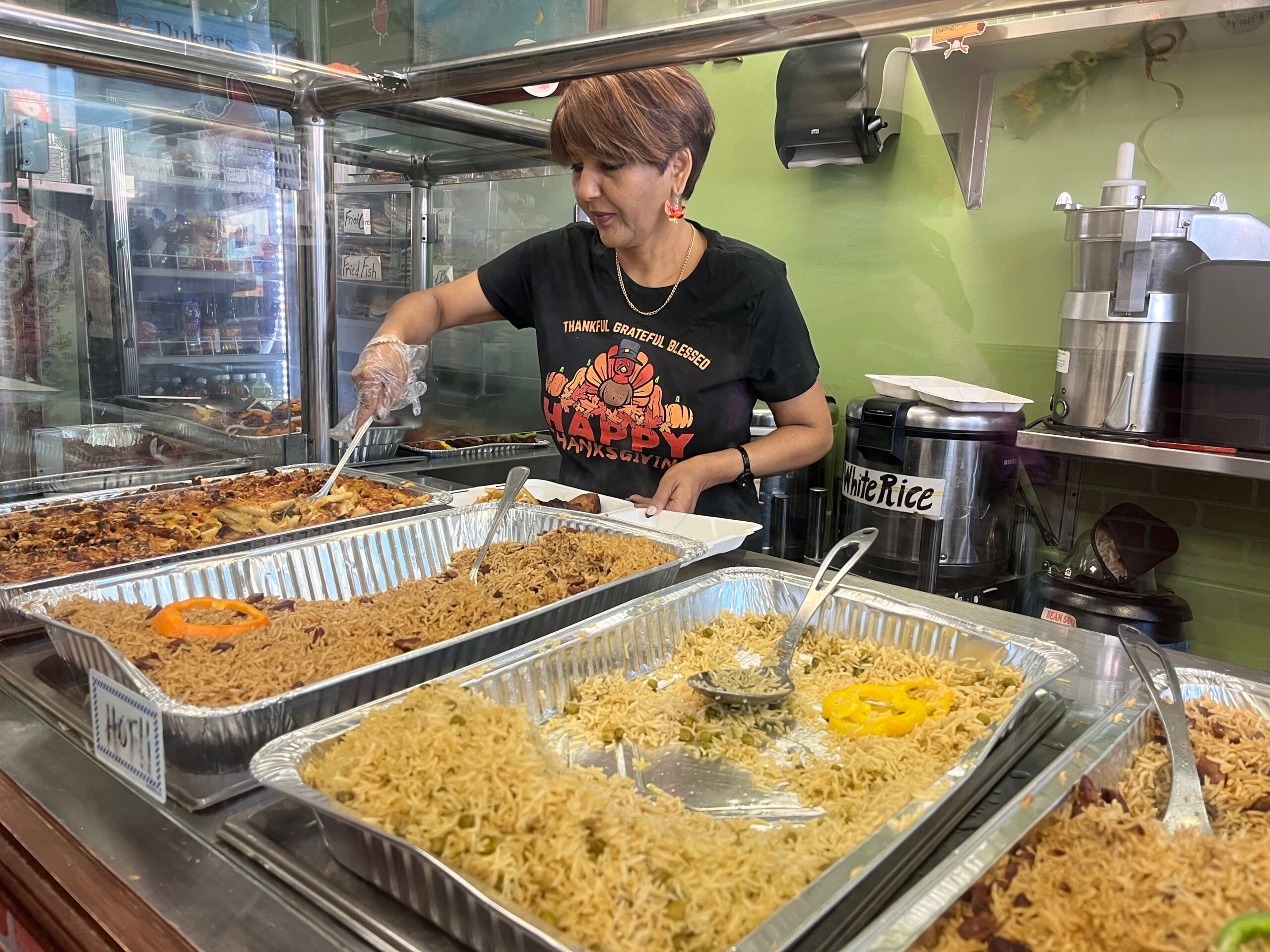 “We have been giving back to the community for 30 years,” owner Shamila Pantaleon said of her family. “I do a lot of donations . . . Now, I do back-to-school giveaways in the summer, and we do [the Thanksgiving meals] as our own giveback and we support local businesses.