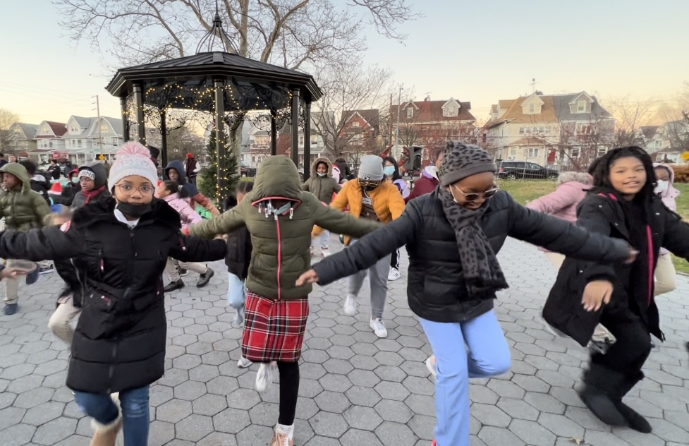 Students from nearby P.S. 119 brought their best artists, decorators, singers and dancers to Amersfort Park on Friday, December 9th to join in on the community holiday lighting event near the gazebo located on East 38th Street and Avenue I.