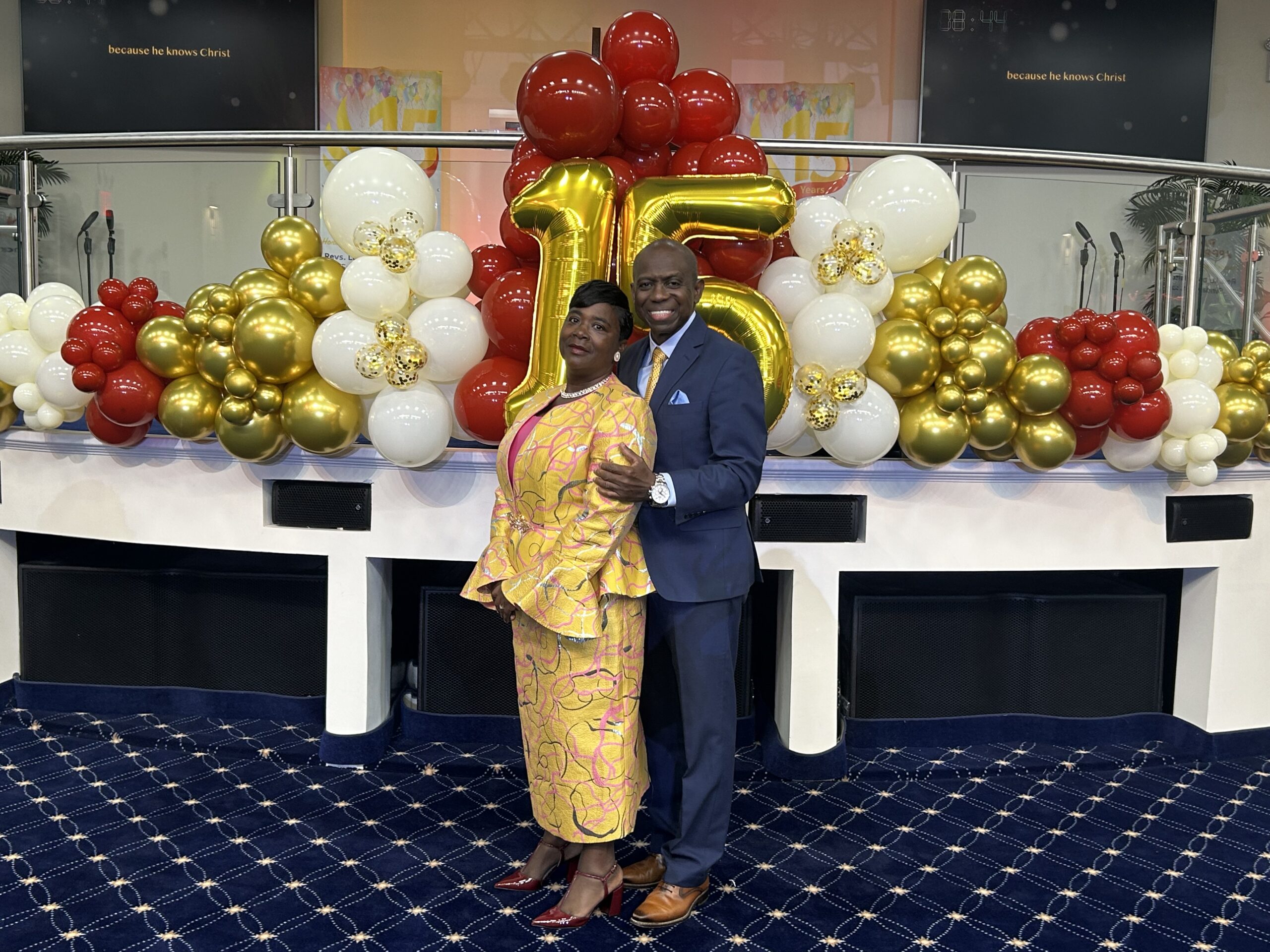 There was a lot to celebrate at the Pastoral Anniversary and Appreciation Celebration on Sunday, October 12th, at Rehoboth Open Bible Church.  The church, located at 888 East 56th Street, was adorned with sparkling red, gold and white decorations, as the congregation celebrated the 15-year anniversary of Pastors Leroy and Dalton Spencer.