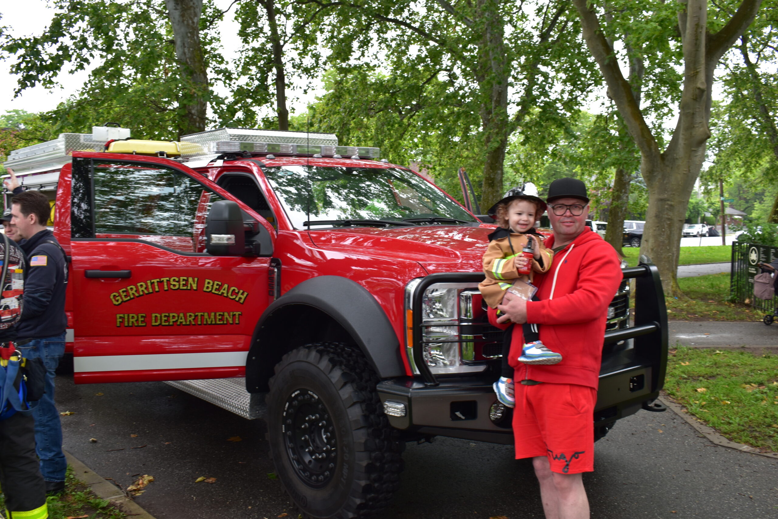 The Vollies was founded in 1922; for more than a century, its crew has grown to include 30 dedicated volunteers who answer over 500 calls per year, protecting life and property in the Gerritsen Beach area. The Vollies operate a fleet of four fire and EMS apparatus, as well as the new fire truck, which families photographed and children got the chance to sit in the passenger seat and turn on the sirens.