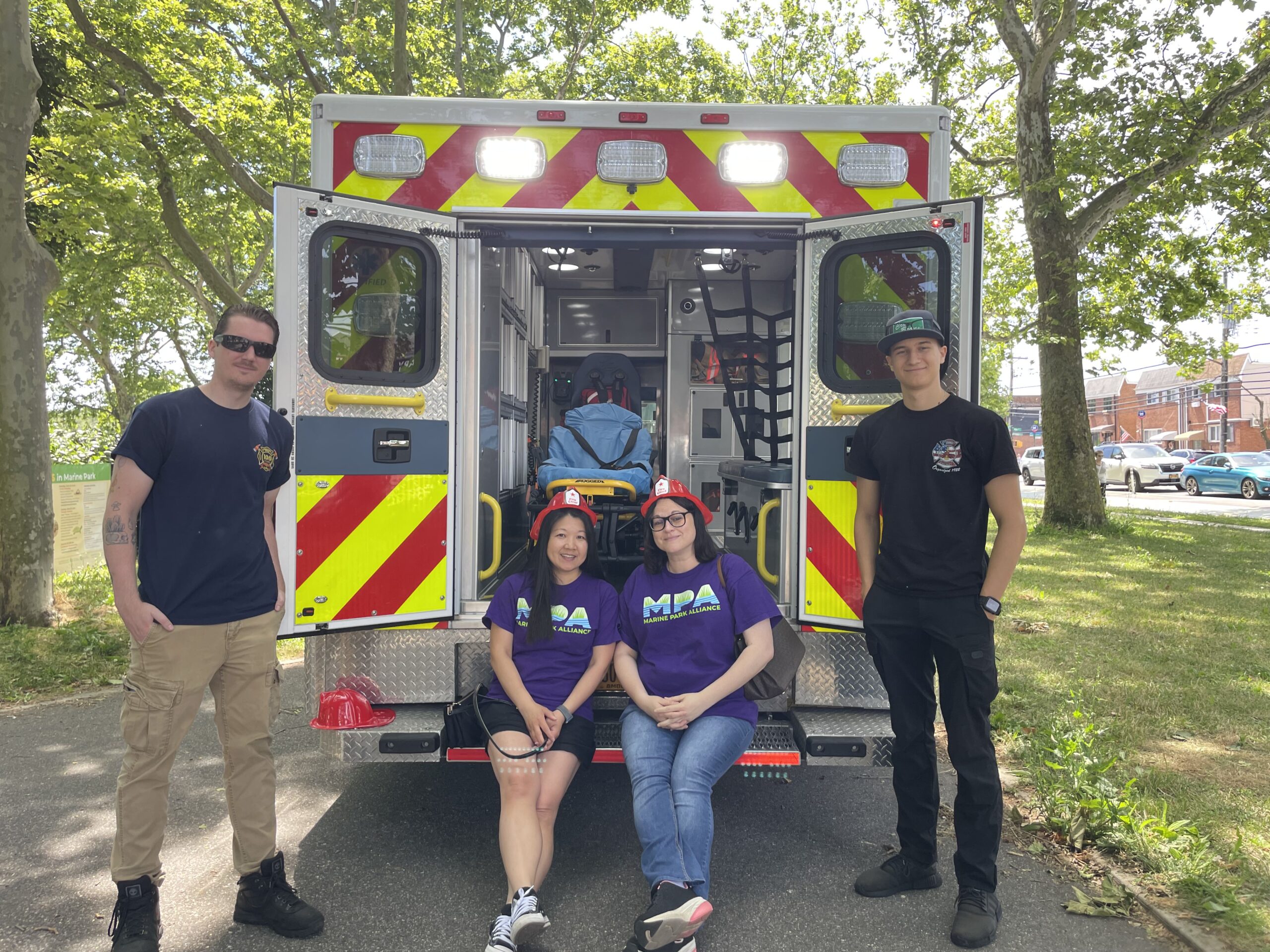 Parents and their children gathered at Dr. John’s Playground, located at Gerritsen Avenue and Avenue X, on Sunday, June 16th, for the first event in a Summer Children’s Series presented by the Marine Park Alliance (MPA), known as “Just for Kids.” The Father’s Day event – “Inside an Ambulance” – gave families the chance to spend quality time together while exploring the inner workings of an ambulance and learning some basic first aid, such as applying a bandage on a boo-boo.