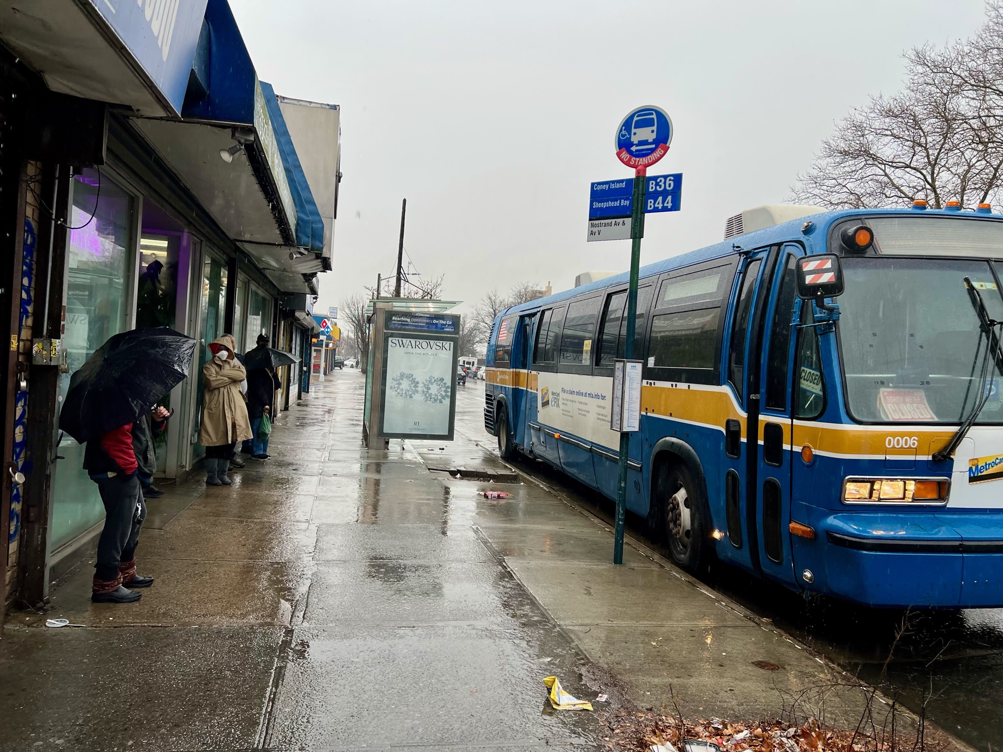 Even in pouring rain, seniors lined up outside the office of Assemblywoman Helene Weinstein for the convenience of taking care of their public transit needs on a parked city bus through the MTA Reduced-Fare MetroCard Program on Tuesday, January 3rd.