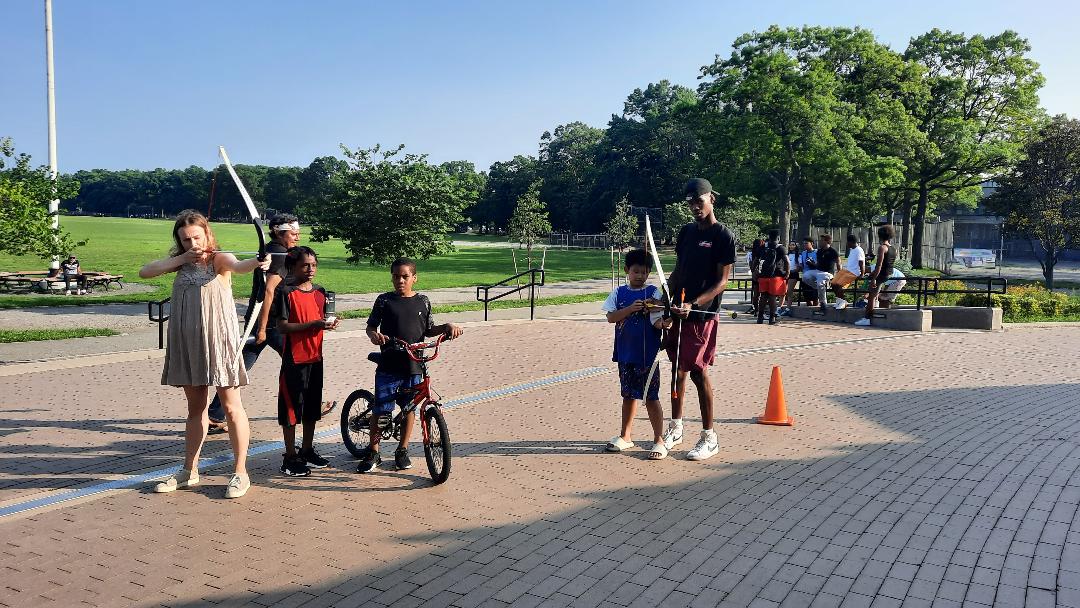 Children were given numbered tickets to receive free books and toys, while older children practiced their archery skills outside the Carmine Carro Community Center. There was also a raffle at the end of the concert; the assemblywoman called out the lucky winners, and kids got to choose their favorite toys.