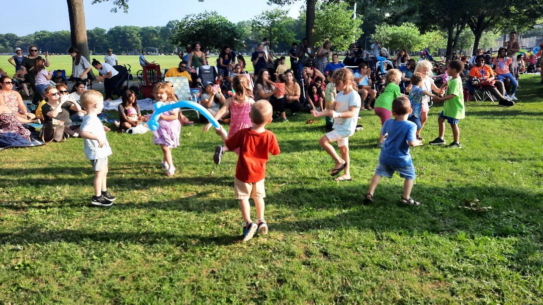 Adults have really enjoyed the free outdoor concerts in Marine Park this summer, but it was time for the kids to “jump, wiggle and shake” with The Fuzzy Lemons last week.