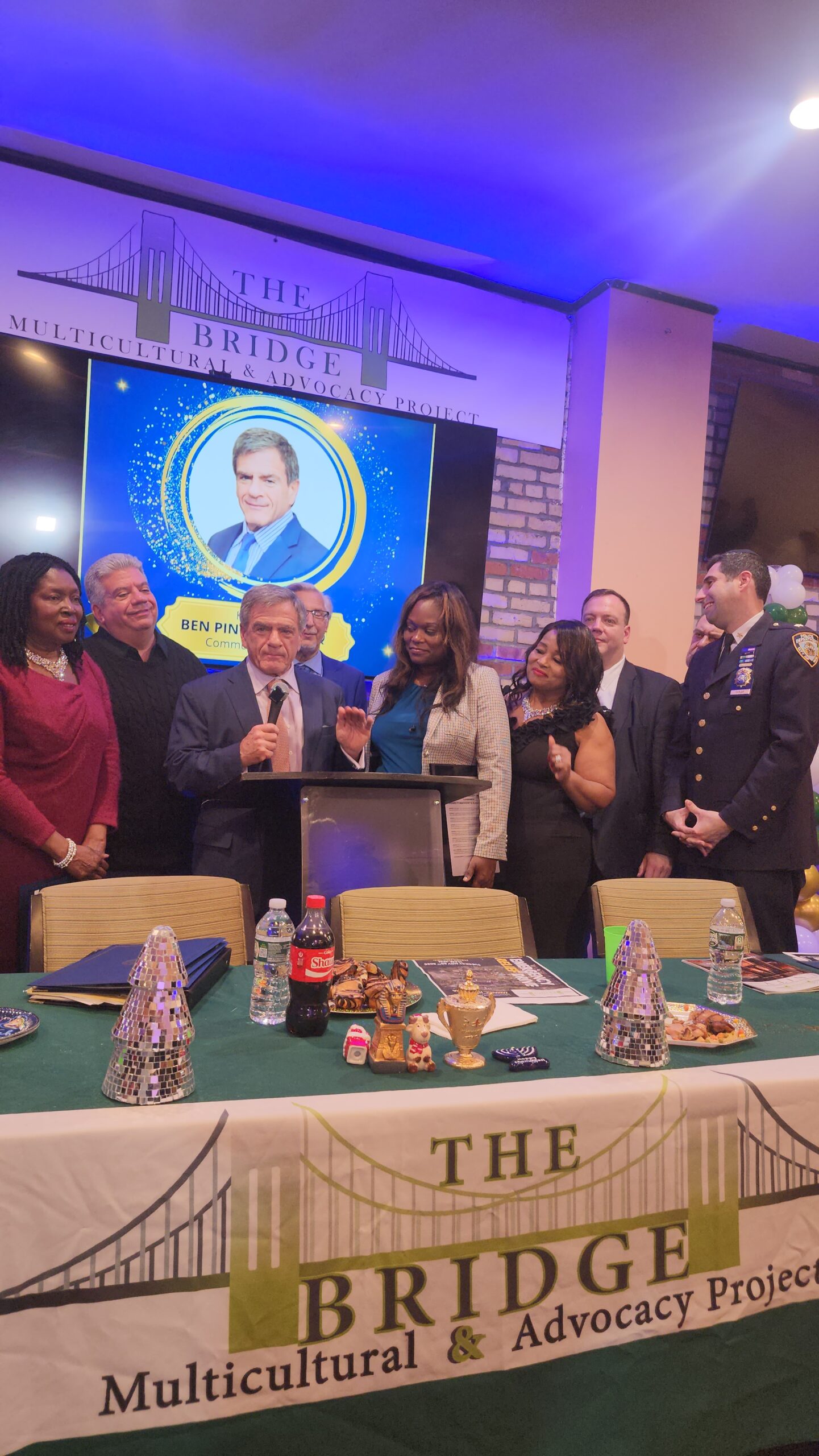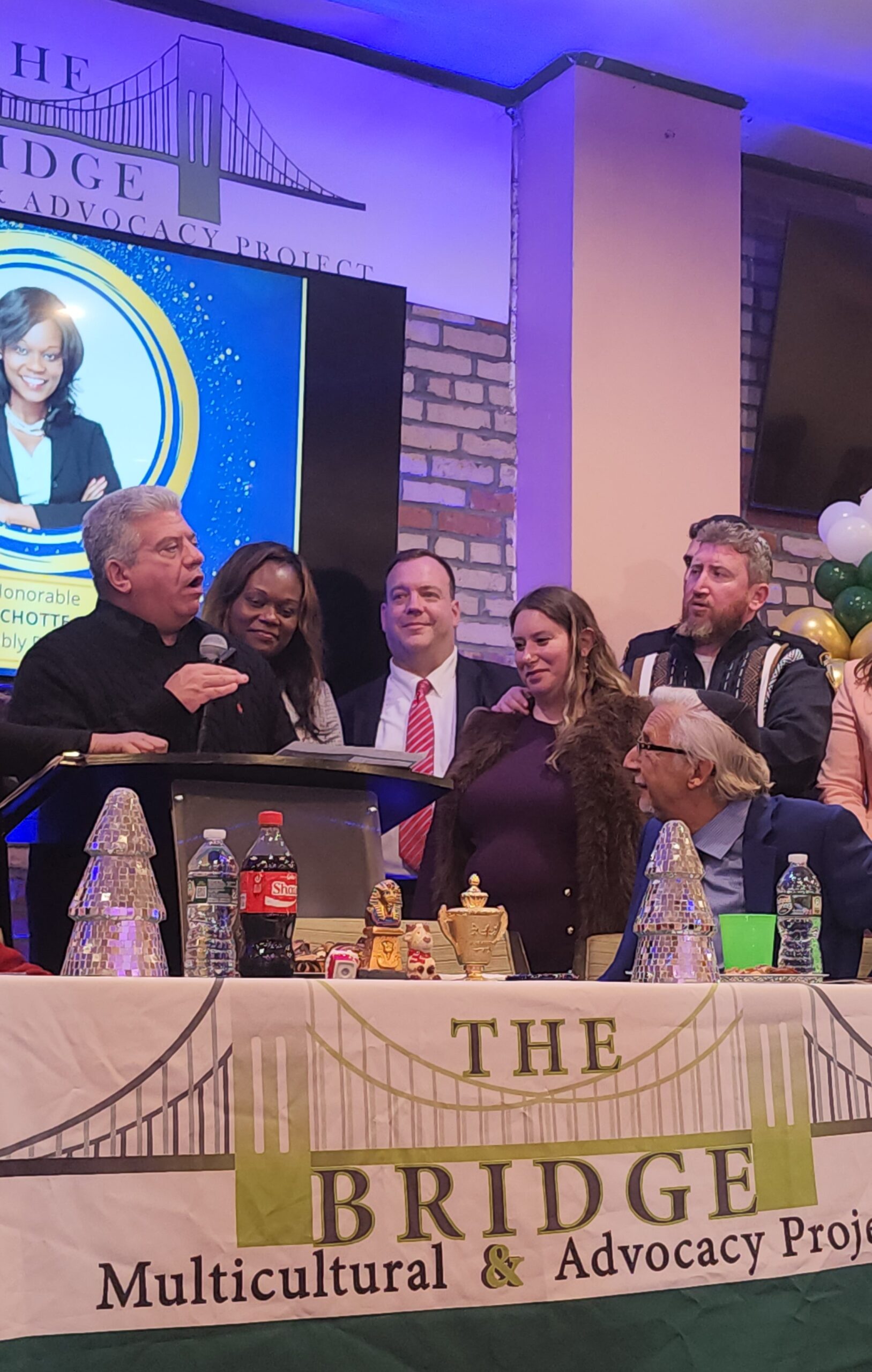 The ceremony, held at 1894 Flatbush Avenue, included a lavish dinner and was emceed by Annesa Ali, director of Special Projects at The Bridge MCP. It commenced with prayers by Bishop Ebony Kirkland from Church of the Living God, Honorable Judge Menachem “Mendy” Mirocznik and Hassan Bakiriddin who represented the Jewish and Muslim faiths, respectively. In her opening remarks, Ali stated, “Unity is very personal to me. It’s not just a word but how I live my life. Tonight, we’re not just ending the year; we’re celebrating connection, compassion and the people who showed up for us when we needed them the most, and that’s what The Bridge is all about.”