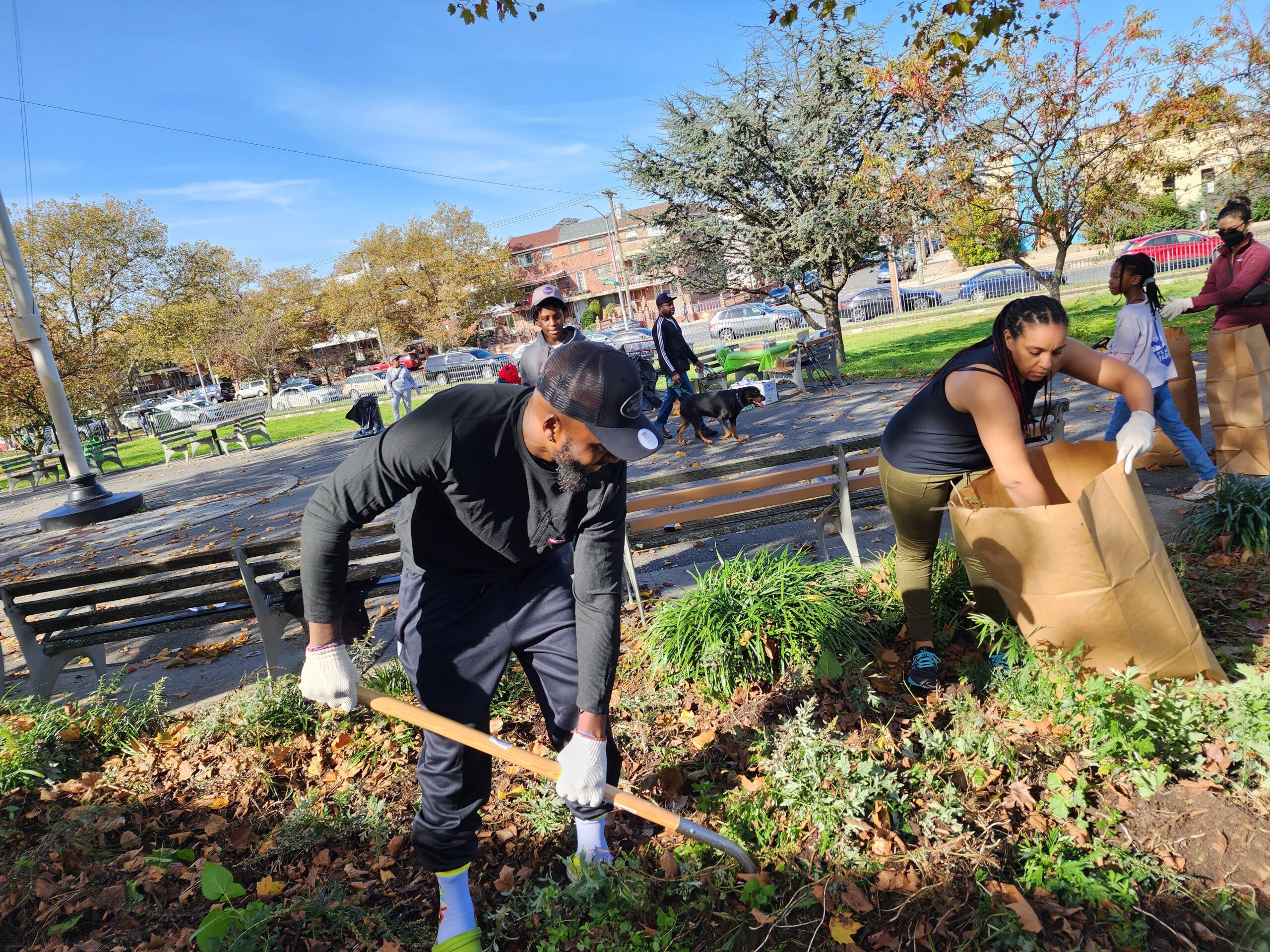 The exercise was carried out in collaboration with City Parks Foundation, NYC Parks and other supporters. A Parks Department representative, Adam Blachly, instructed volunteers on the correct way to handle tools, as well as pick up litter and natural debris.