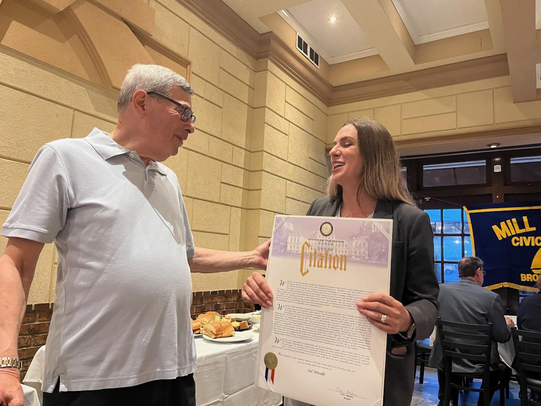 The Pizza D’Amore goodbye party for Needle was attended by CB 18 District Manager Sue Ann Partnow, Assemblywoman Jaime Williams, Councilwoman Mercedes Narcisse and local police officers, among many others. Representatives from the offices of Mayor Eric Adams and Attorney General Letitia James also came out to show support. State Senator Kevin Parker, who now represents the area because of redistricting, also attended, along with the community’s former state senator, Roxanne Persaud. Governor Kathy Hochul sent a signed proclamation for Needle. Even U.S. President Joseph Biden’s office responded to the invitation and politely declined.