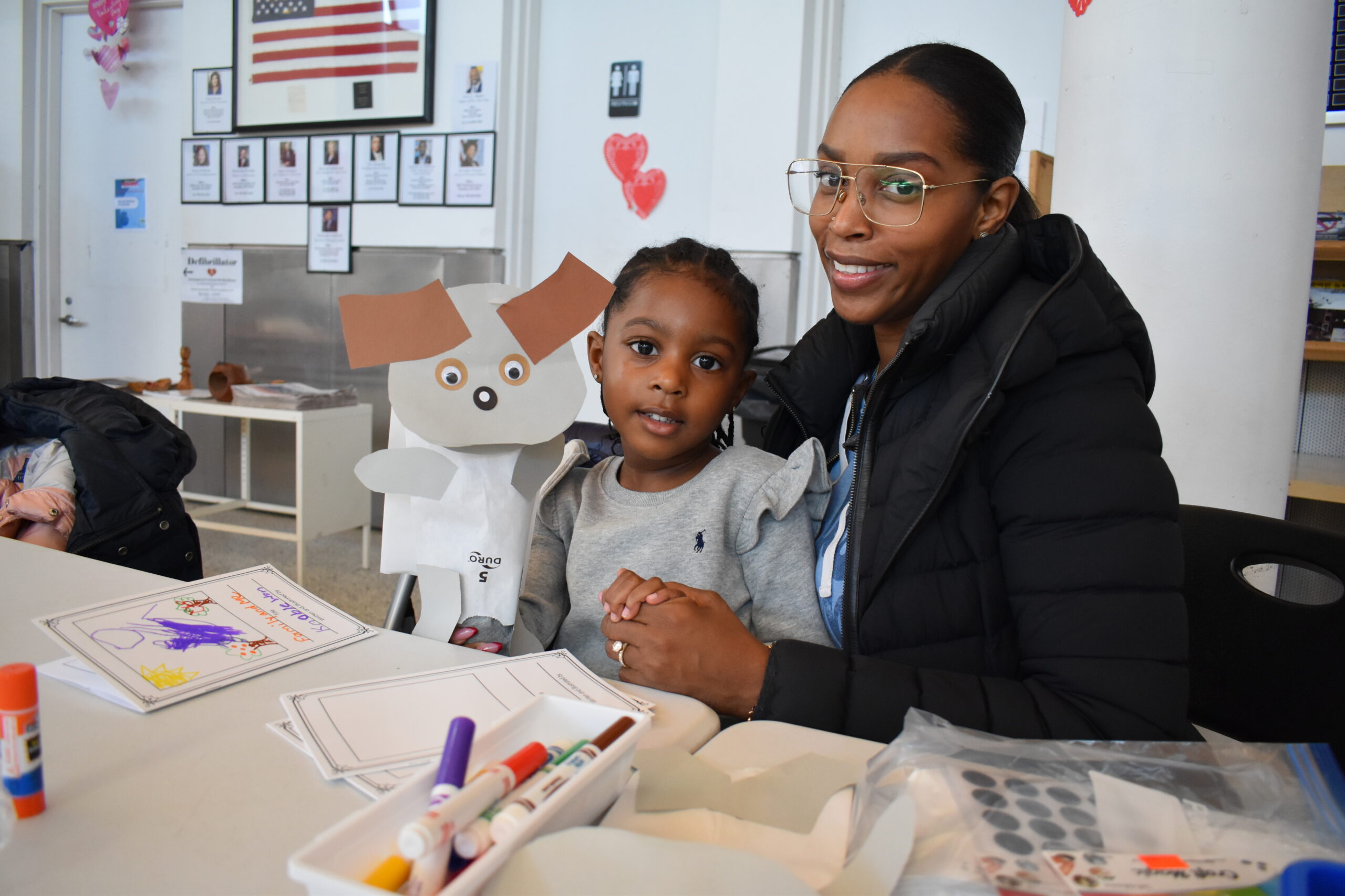 After storytelling time, families participated in arts and crafts, creating their own books, even making their own paper bag “Wuffies,” with cut-out construction paper and googly eyes.