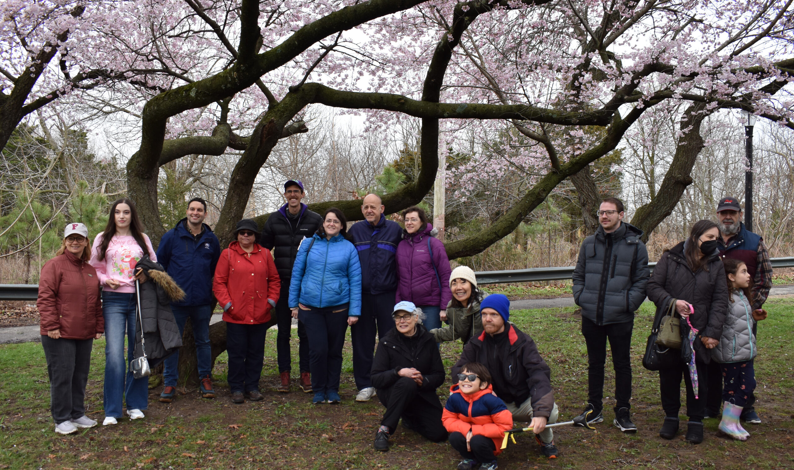 Despite the gloomy weather, a hearty bunch of die-hard nature lovers gathered on Sunday afternoon, April 6th, to relish in the spectacular beauty of Marine Park’s cherry blossom grove (located at East 36th Street and Avenue U), in peak bloom – a very special treat that lasts only about one week, each year.
