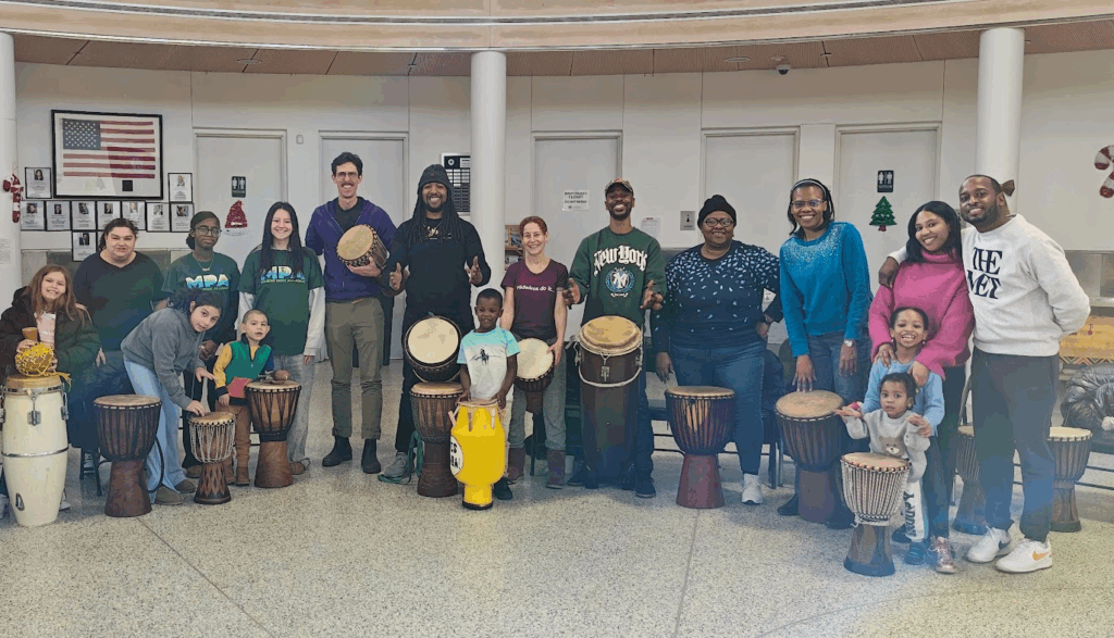 Local families and MPA’s Teen Leaders joined together to use conga, djembe and shakers to celebrate Kuumba (Creativity) – one of the seven principles of Kwanzaa – with the Cumbe Center for African and Diaspora Dance. Participants learned the language of drumming (bass, tone and slap!) with Brooklyn-born African drum instructors Olatunji Ojore and Ryan Greenidge.
