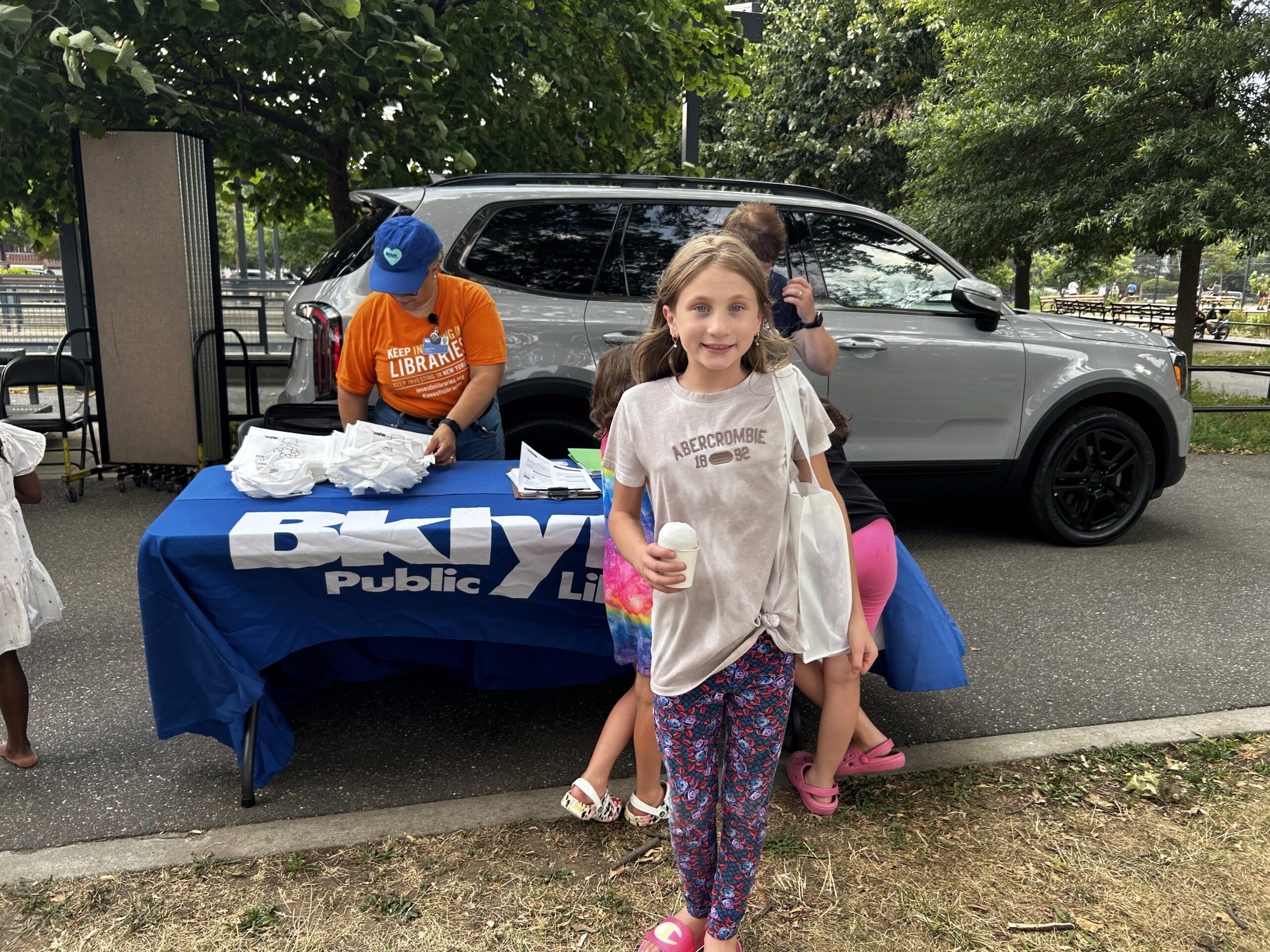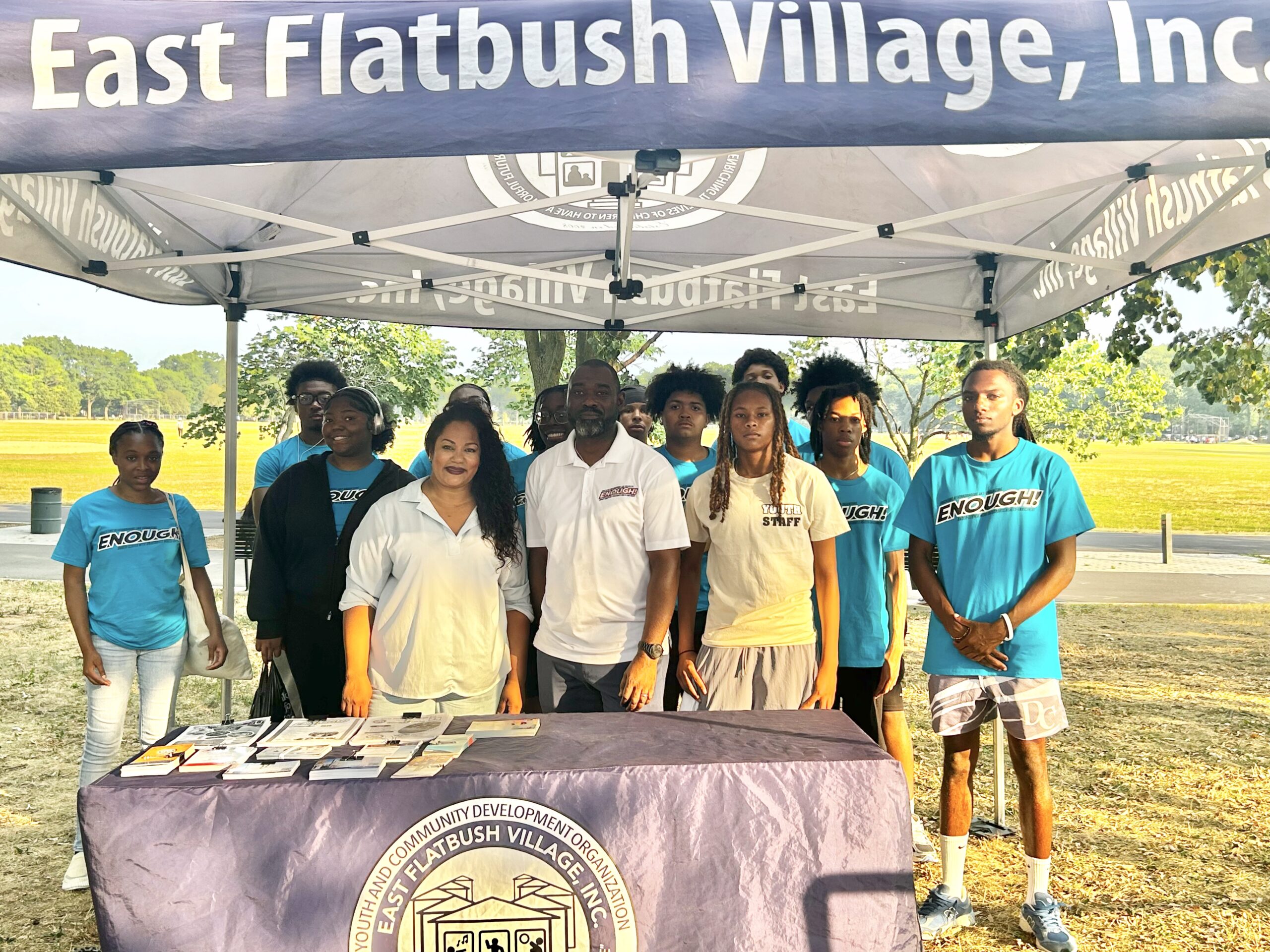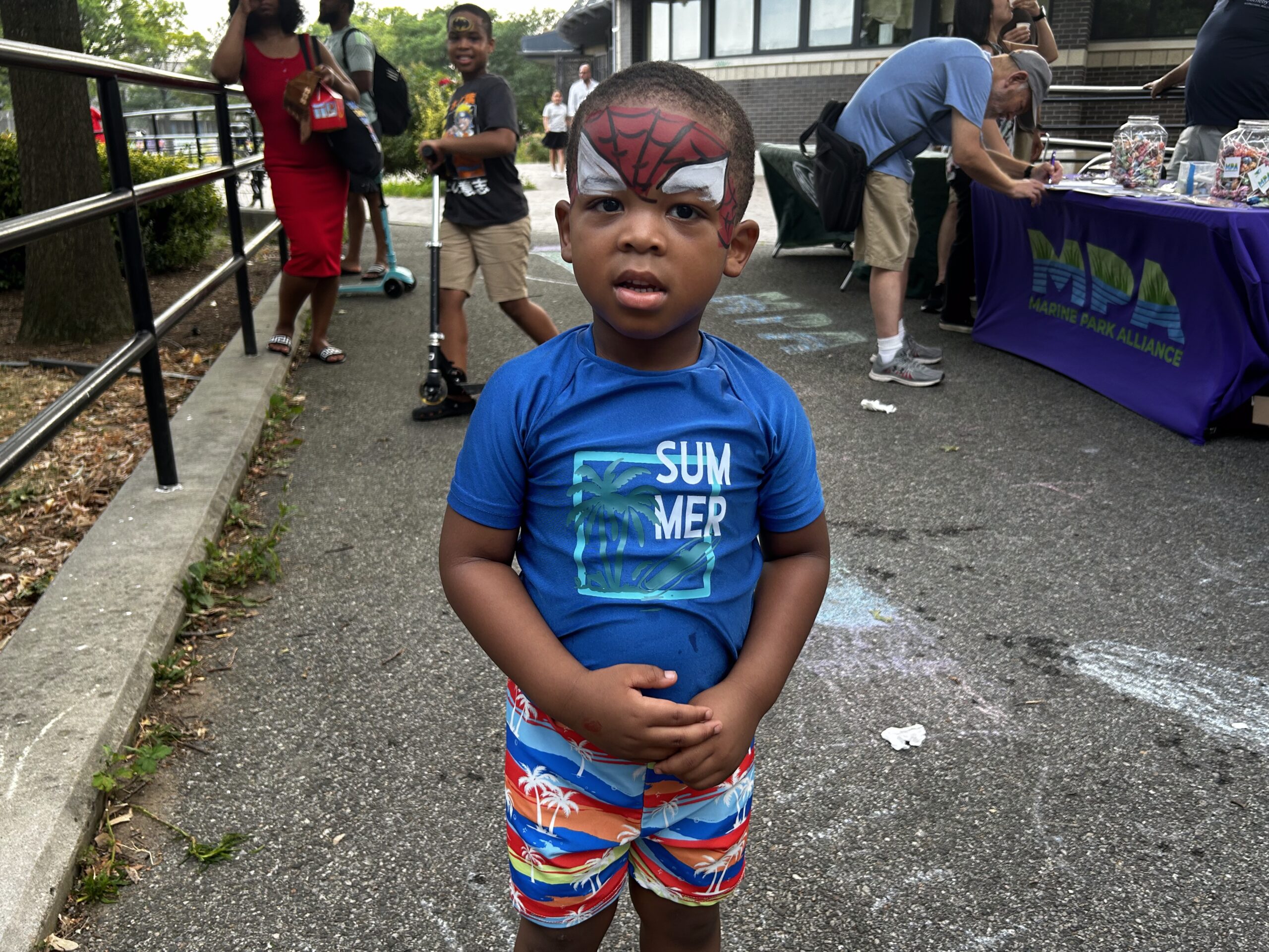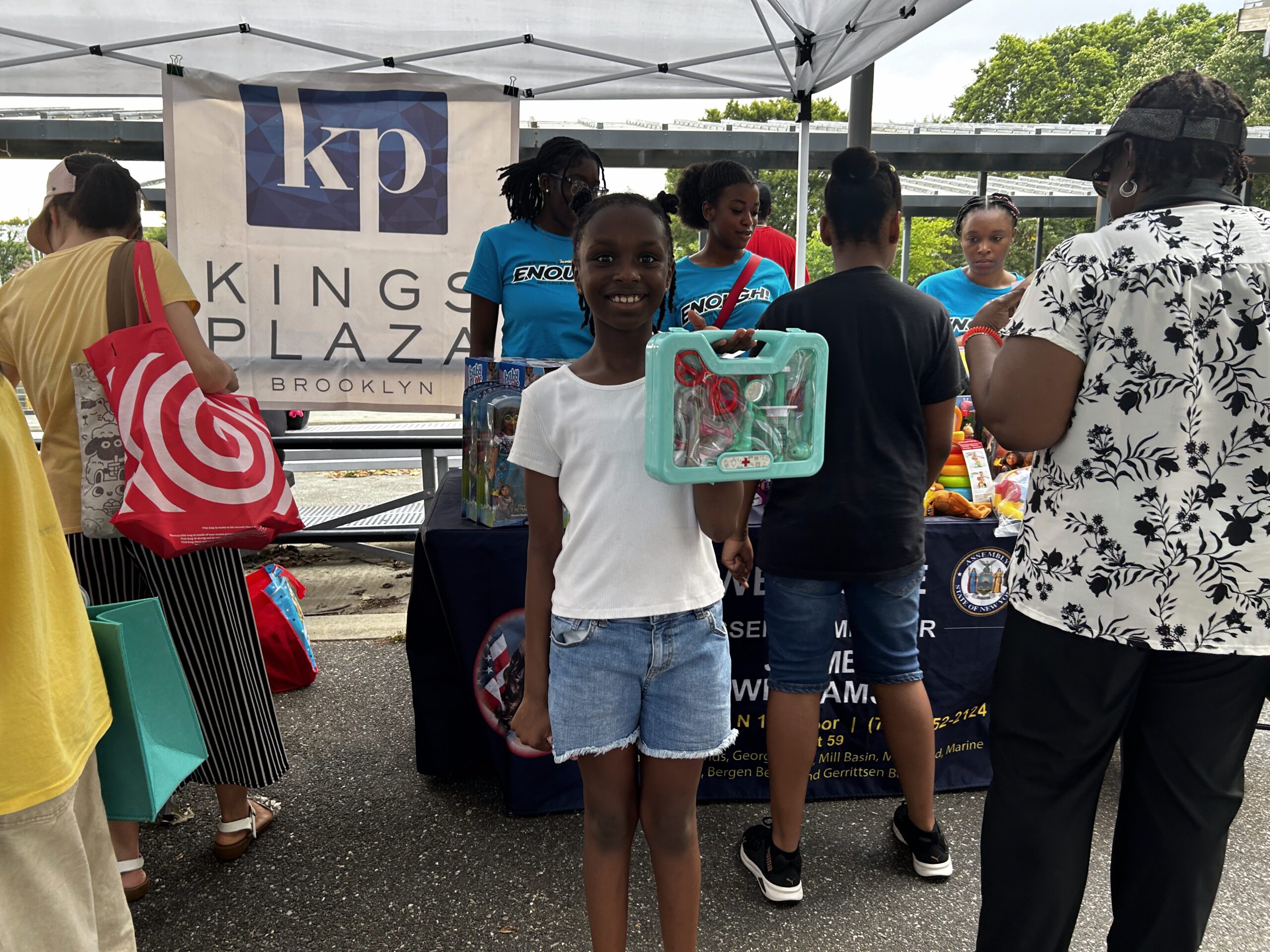 Children ran from table to table enjoying everything that the evening had to offer while DJ Scott Yahney spun Christmas music and tunes that had all the kids dancing. There was also a book table, where every child received a book, and staff from the Brooklyn Public Library signed people up for library cards and gave away summer tote bags. Lines gathered at the East Flatbush Village, Inc.’s E.N.O.U.G.H. table where they handed out delicious ices from Ices Queens on Utica Avenue. One of the longest lines was for face painting – kids ran around cheerfully showing off their Spider-Man and sparkly butterfly faces.