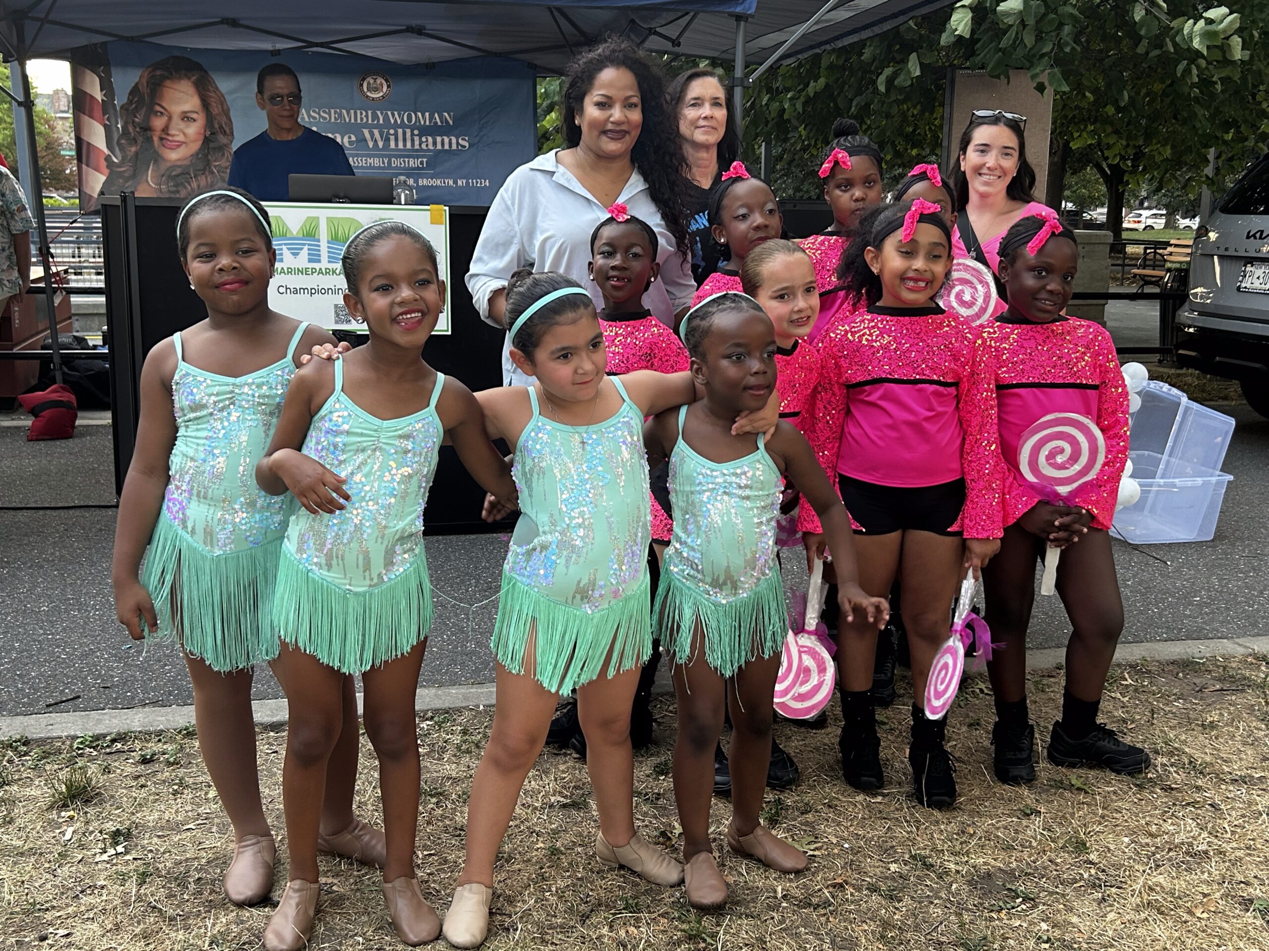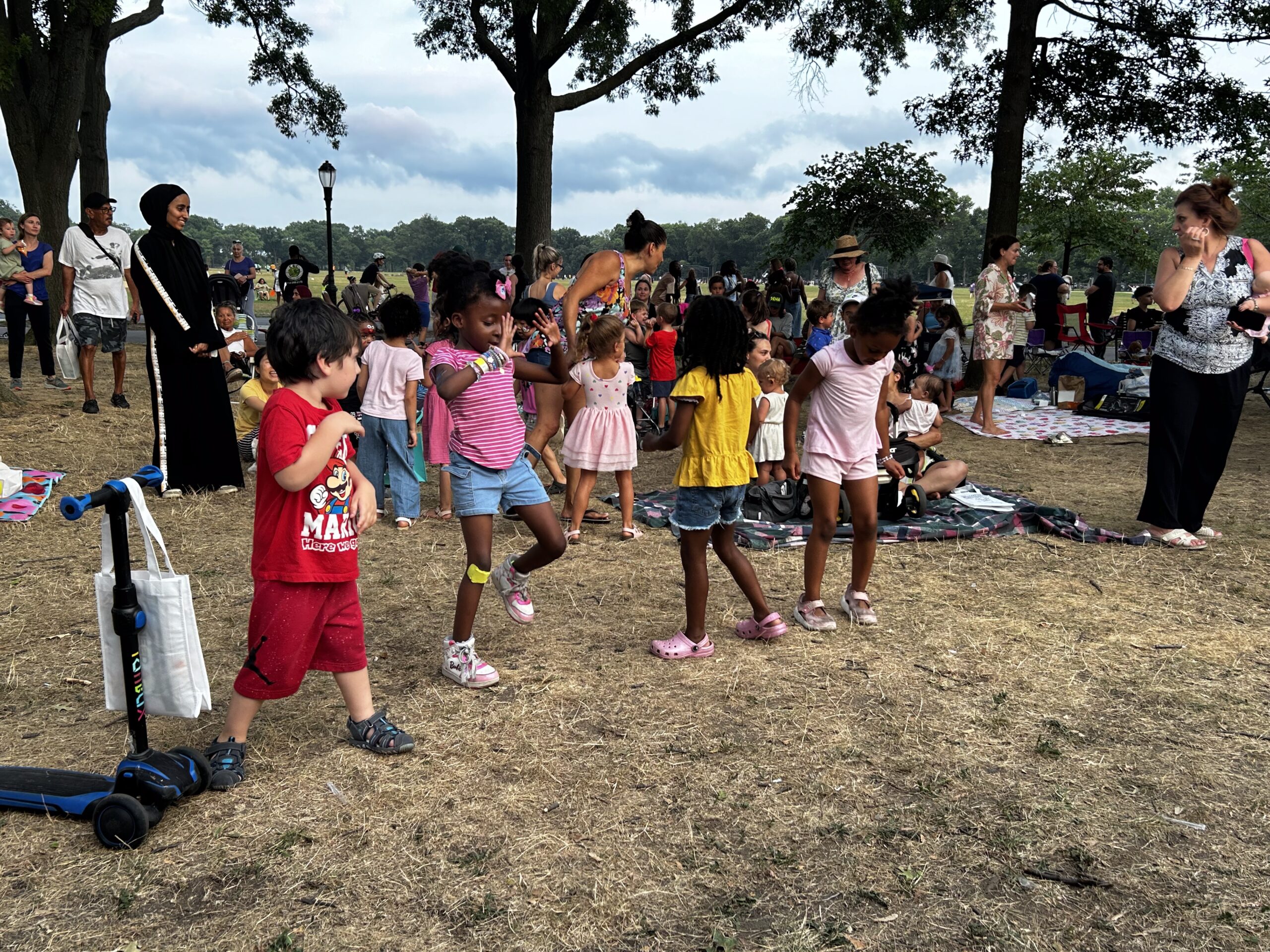 The joy in children’s eyes was magical as they scanned neatly displayed toys, creating a Christmastime feeling, even though the temperature was in the 90s at the Children’s Concert: Christmas in July, held on July 30th, the fifth concert in a series of Marine Park summer concerts sponsored by Assemblywoman Jaime Williams.