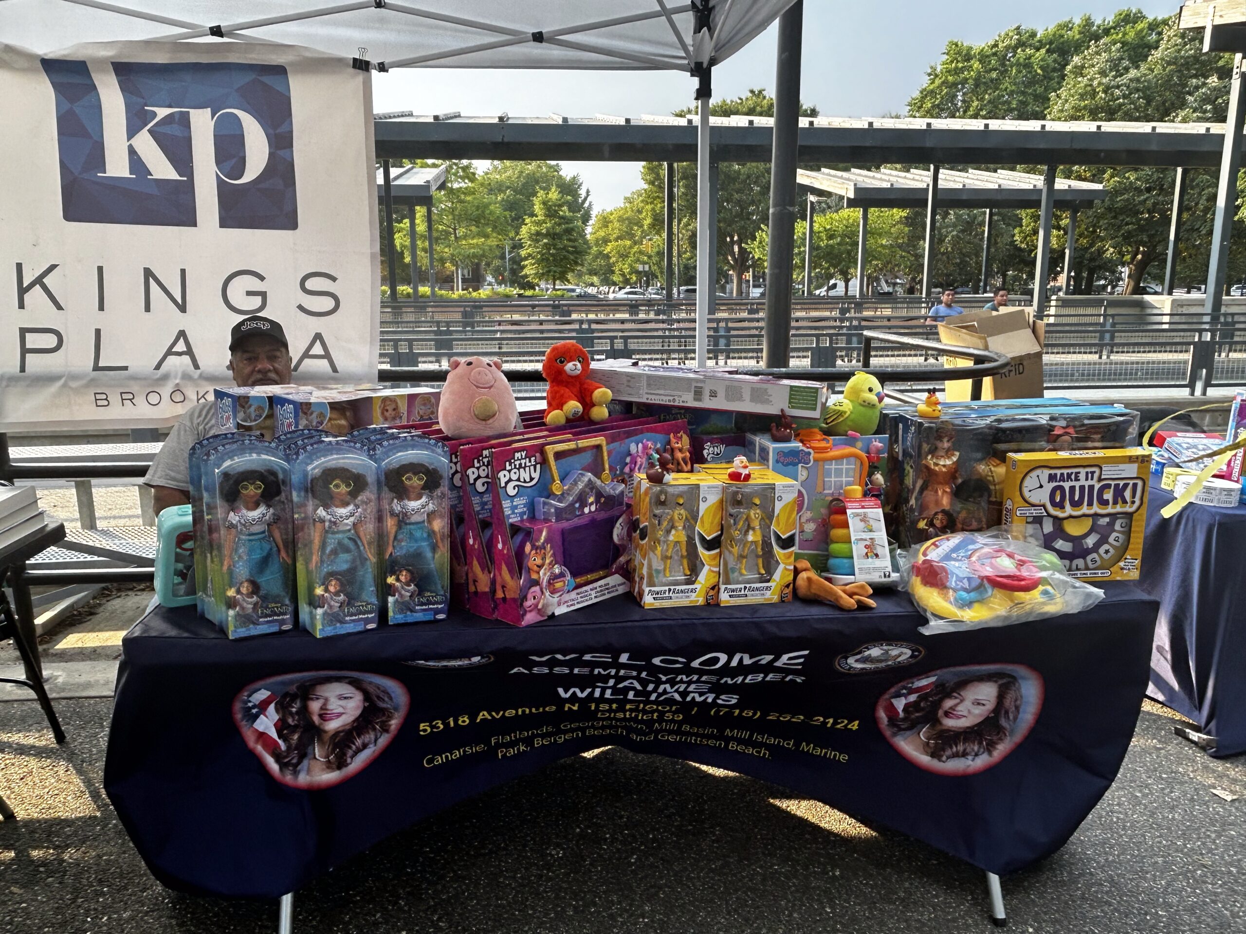 Every child that attended got a raffle ticket, a chance to pick anything they wanted from the tables of toys. Williams, Kings Plaza and other sponsors helped to pack them with Power Rangers, footballs, Little People, My Little Pony, Baby Alive, paint sets and games.