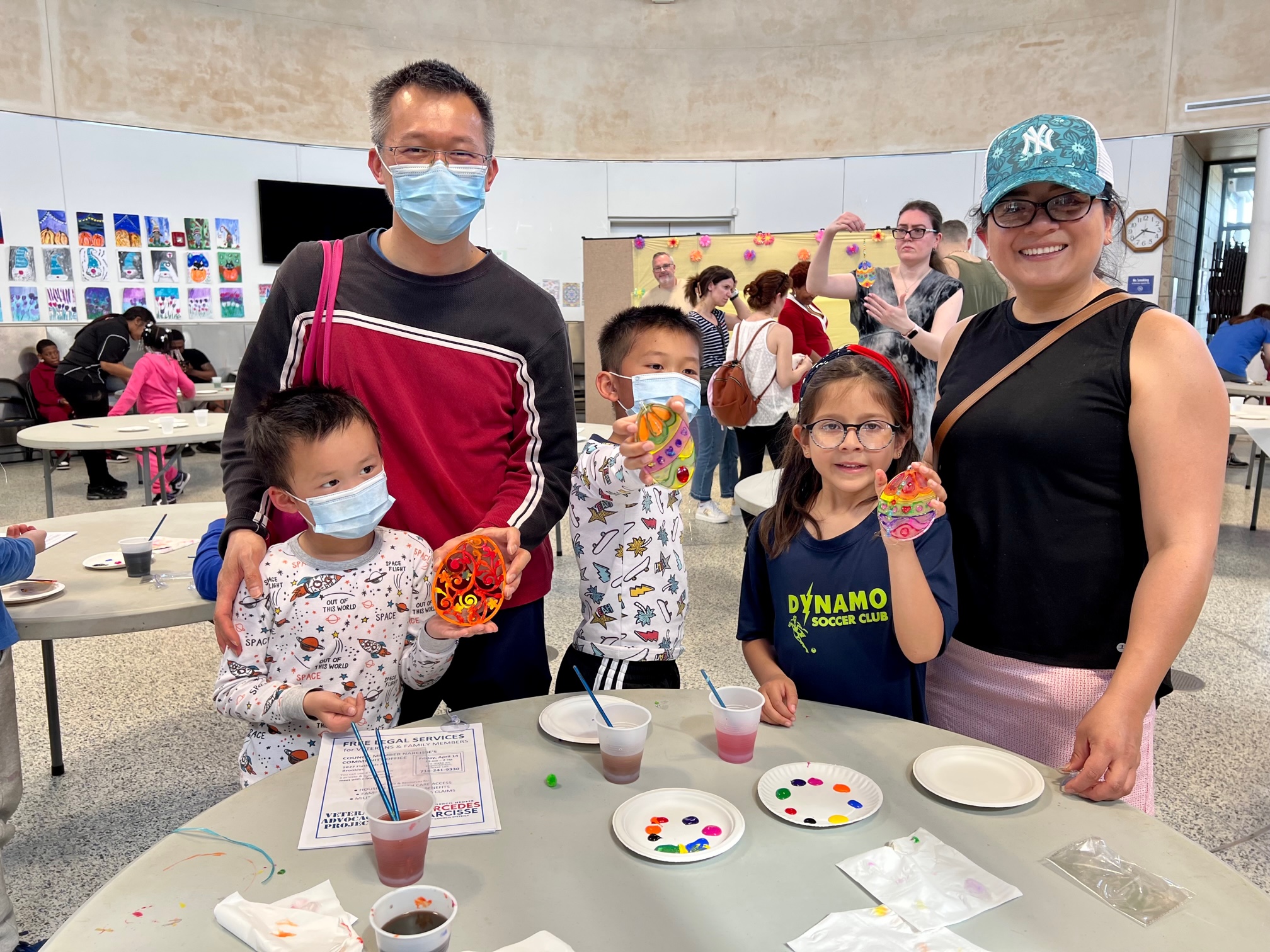 Children from the area and schools, including P.S. 207, P.S. 222, P.S. 276 and P.S. 312, selected from a large array of age-appropriate materials to paint and decorate. There were stained glass patterns, stencils, paints, brushes, colorful cotton balls, pipe cleaners, jewels and beads galore, with the addition of glitter, lanyards, decorations and more. There were also lots of treats and refreshments for everyone.