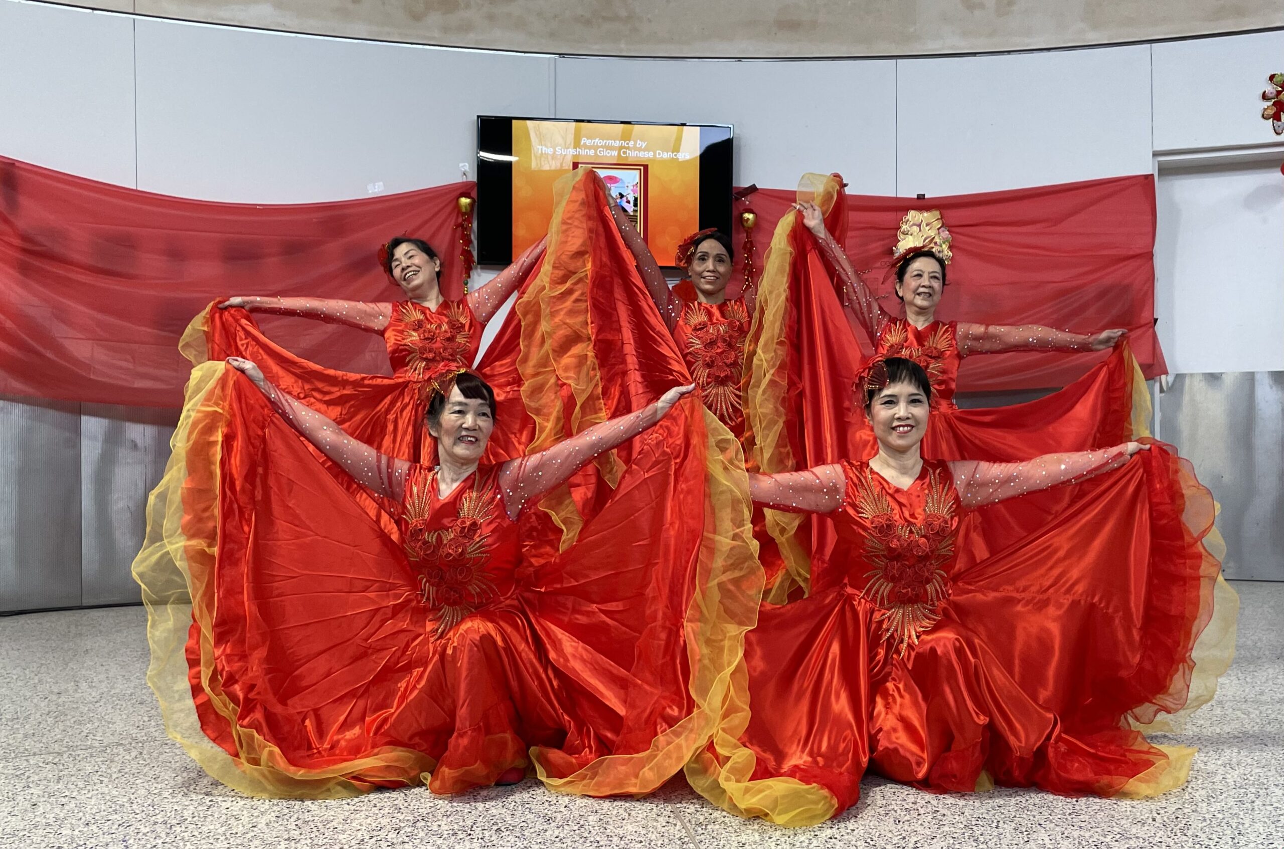The event started with a performance from the Southern Praying Mantis Lion Team. The performance explained the significance of this Chinese tradition, mainly how the lion is used to bless people and scare away evil spirits, and how it symbolizes the New Year by eating lettuce (life itself) and mandarins (sweetness in life) and a red envelope (wealth). It continued with several performances from the dancers of Sunrise Glow Chinese Dancers.
