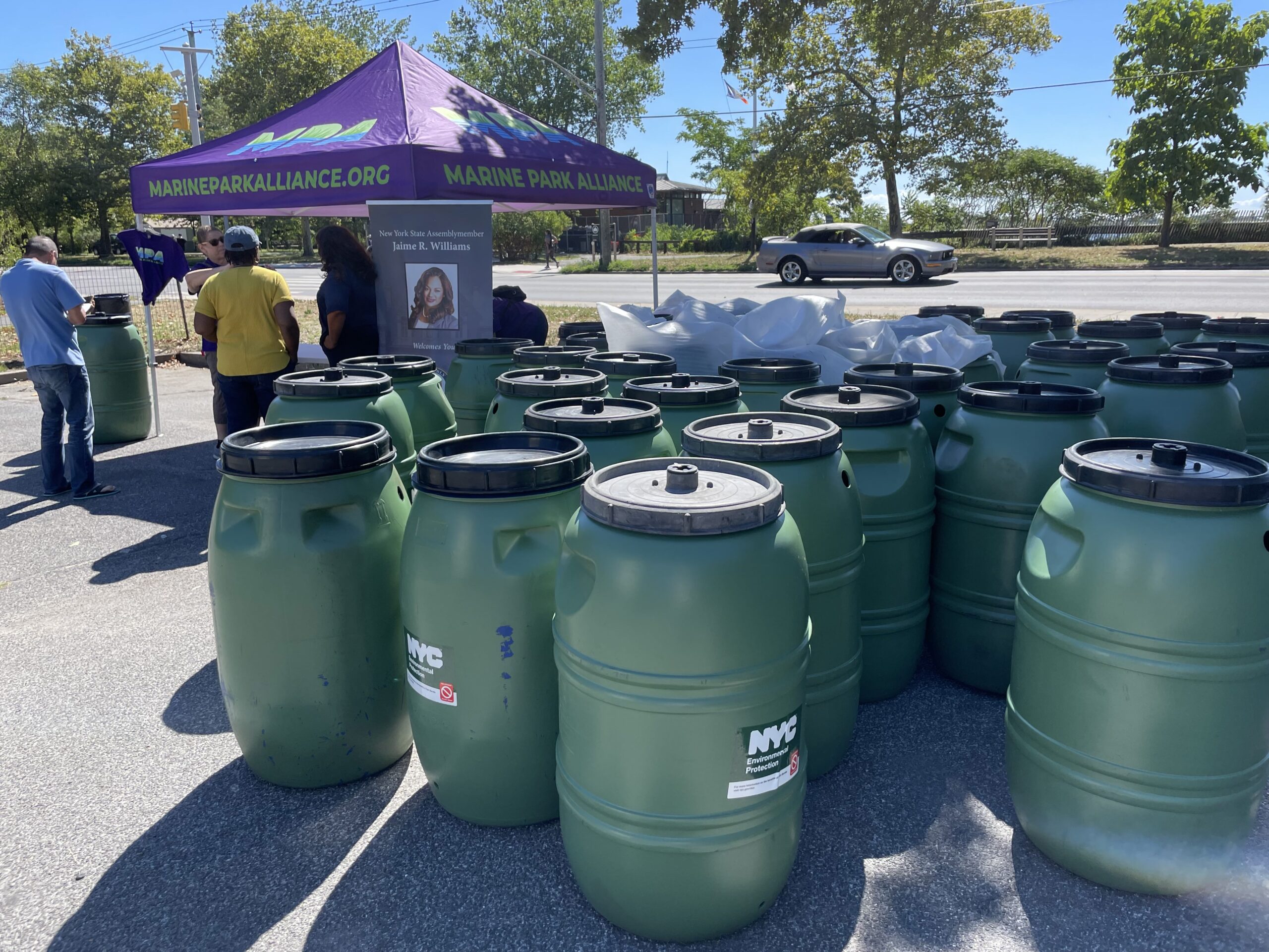 Organized by Assemblywoman Jaime Williams in conjunction with the Marine Park Alliance (MPA), with assistance from the Canarsie Lions Club, residents gathered at Marine Park on Saturday morning to obtain one rain barrel per household.