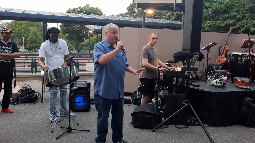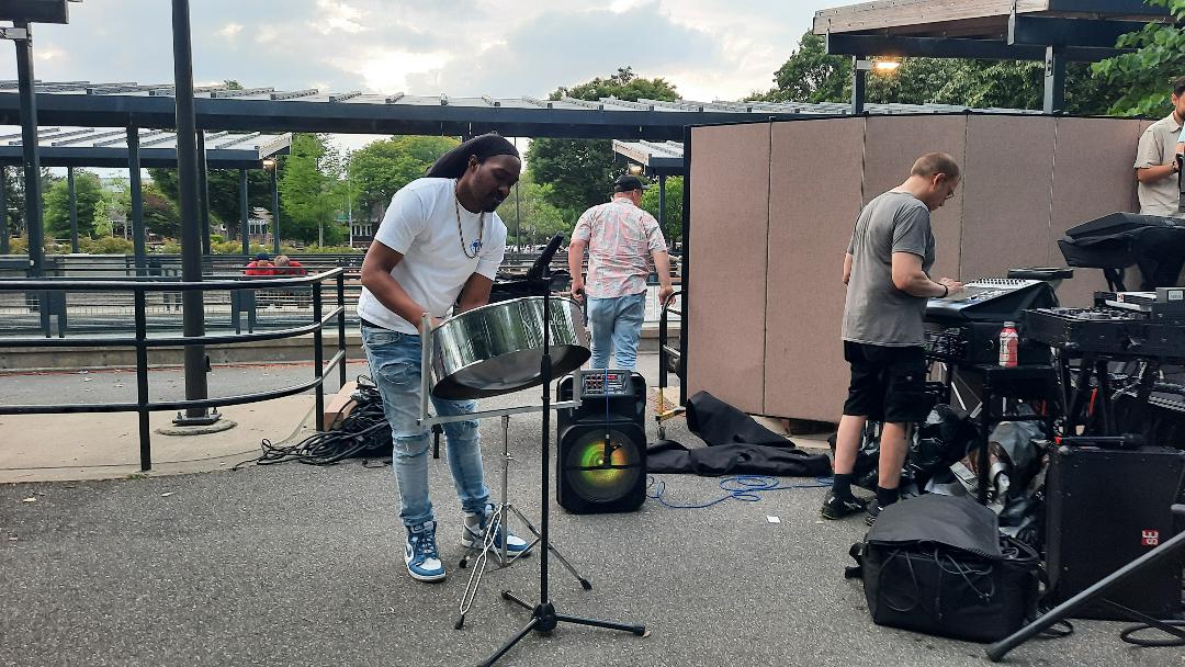 Before the eight-piece band performed, the Abe Stark Center Steel Pan Band entertained the crowd with the soothing sounds of steel pan. The drummers learned their craft at the Abe Stark Older Adult Center in Canarsie, one of the many programs offered for active older adults, thanks to Program Director Patricia Lynch and Millennium Development.