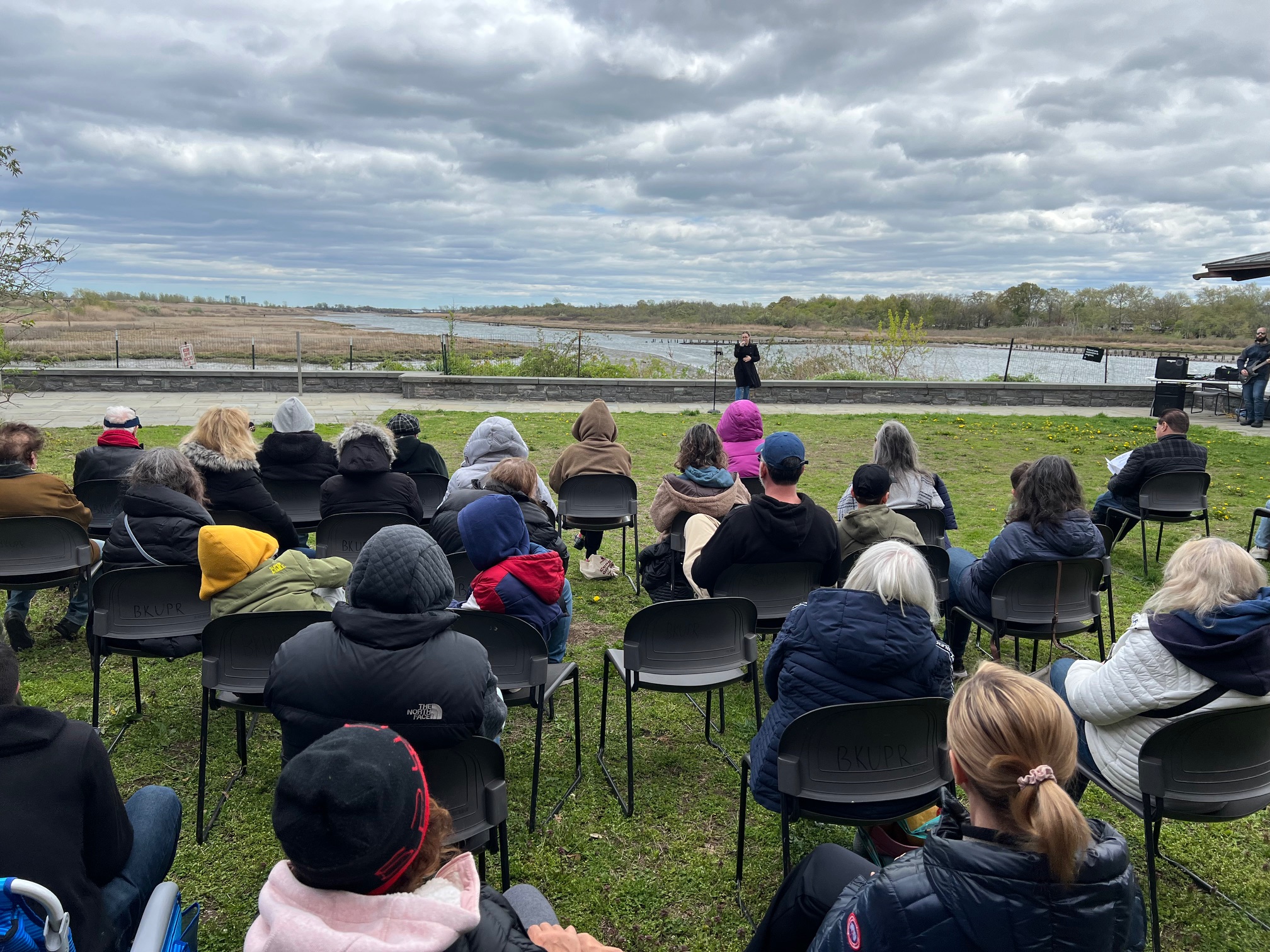 With the beauty of the Salt Marsh at low tide exposing the historic wooden remnants of the old Gerritsen gristmill in the tidal waters of Gerritsen Creek as a backdrop, birds sang and flew in unison to the music that was carried in nature’s strong breezes that day. Attendees were greeted and then treated to a full program of song, dance and entertainment arranged by the Salt Marsh Alliance (SMA) and the Brooklyn Dance Company.