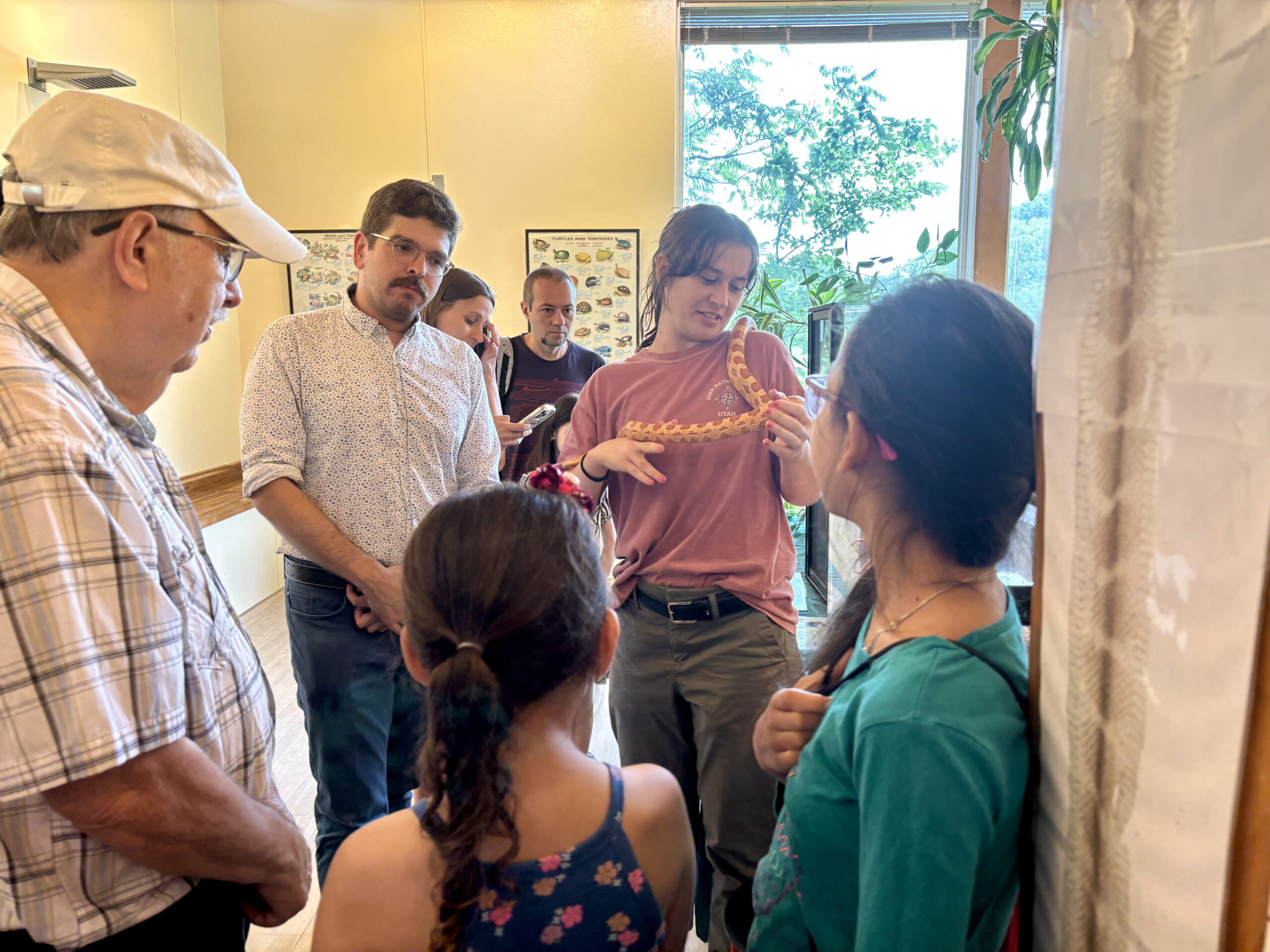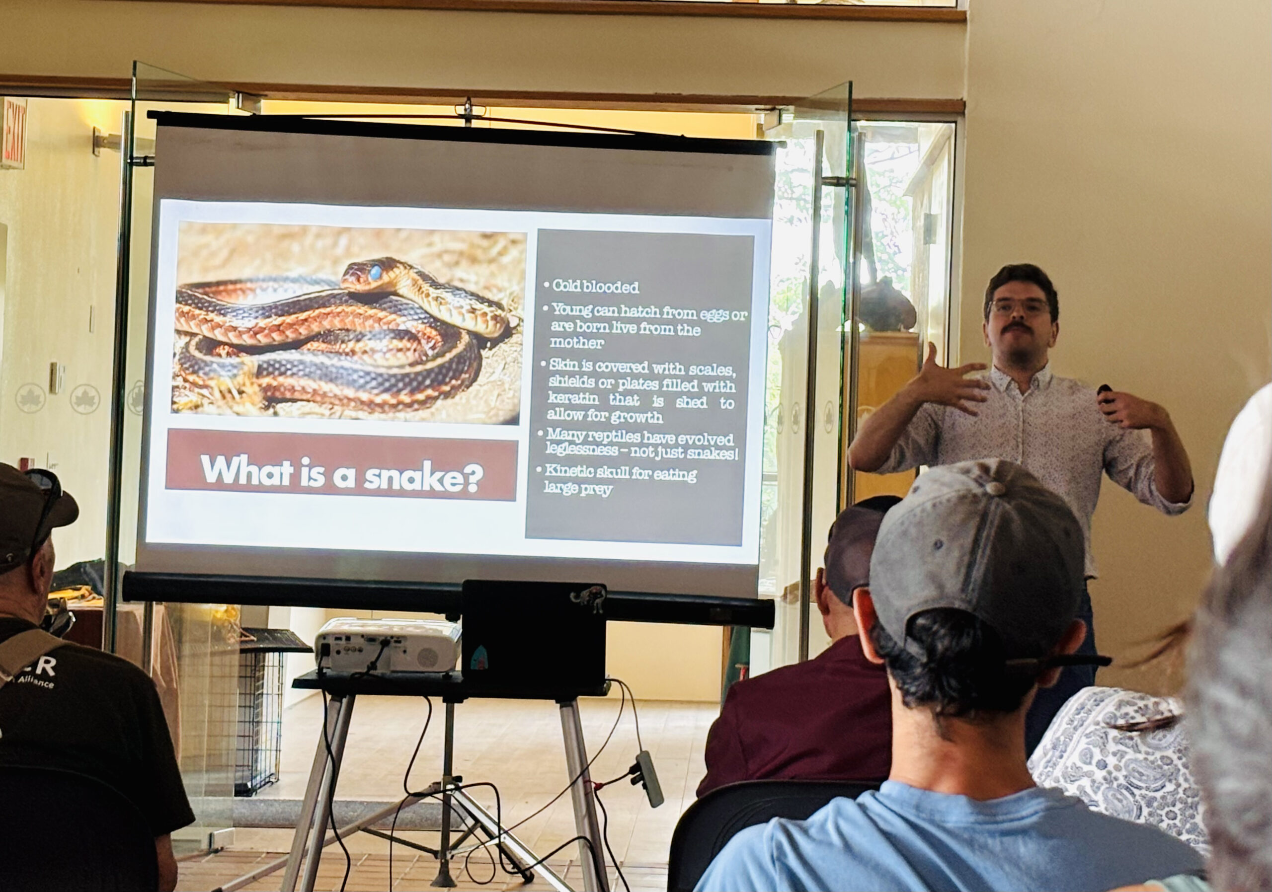 After the presentation, attendees were invited to observe one of the two non-native snake species currently housed within the Nature Center, up-close: a Corn Snake, named Big Sam, who quickly became the highlight of the afternoon.