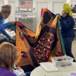 At the event, Green, an adjunct professor of Art History at Medgar Evers College, demonstrated stitching techniques and spoke of the discipline that goes into quilting. There was a special moment in the teaching when she and her husband, Richard, presented her quilt, taking as much care to unfold the large piece as must’ve gone into its intricate stitching, color coordination, fabrics and design. “Quilting is something that can help keep the legacy of a generation alive,” she said, of the long held African-American tradition.