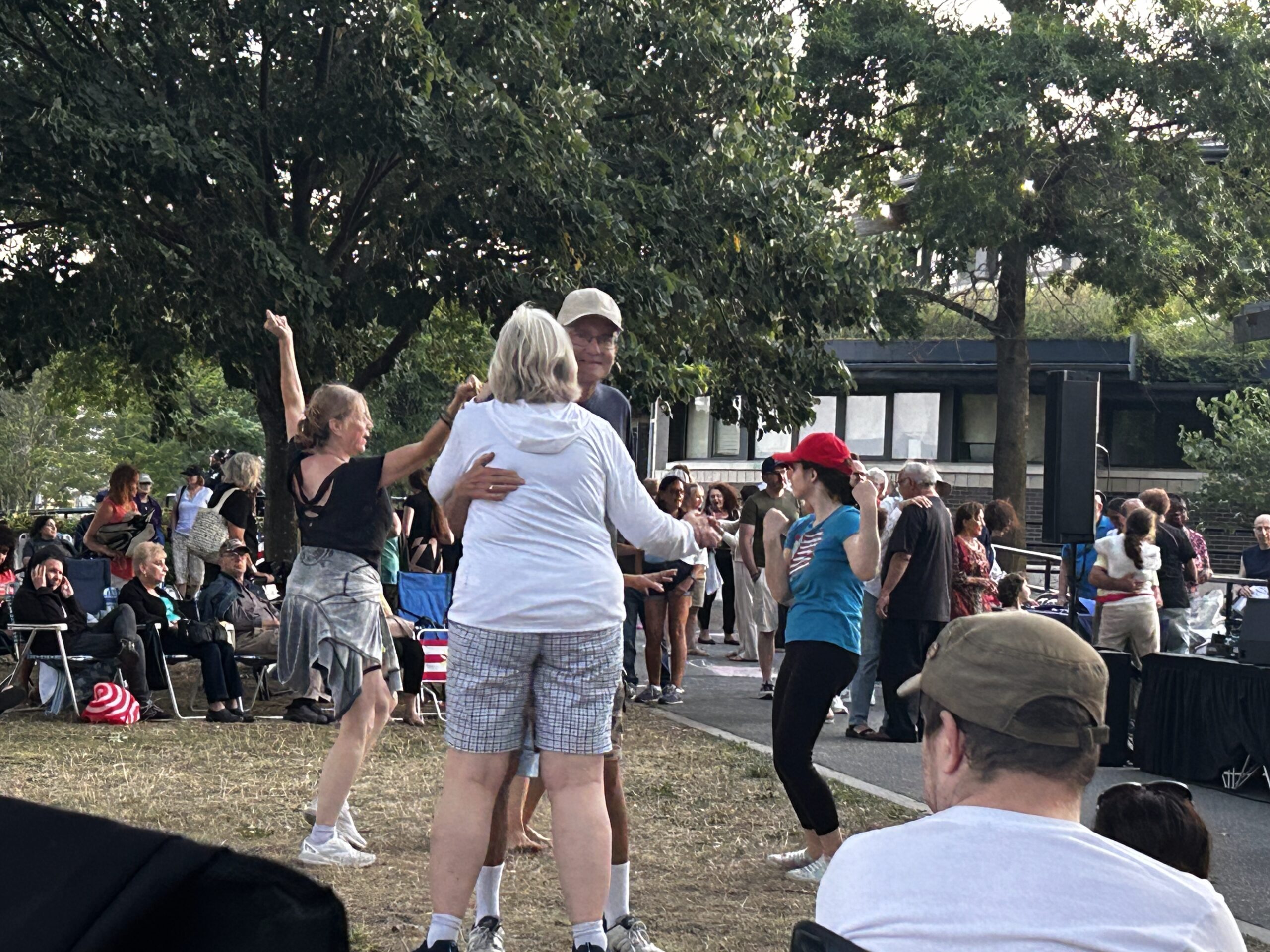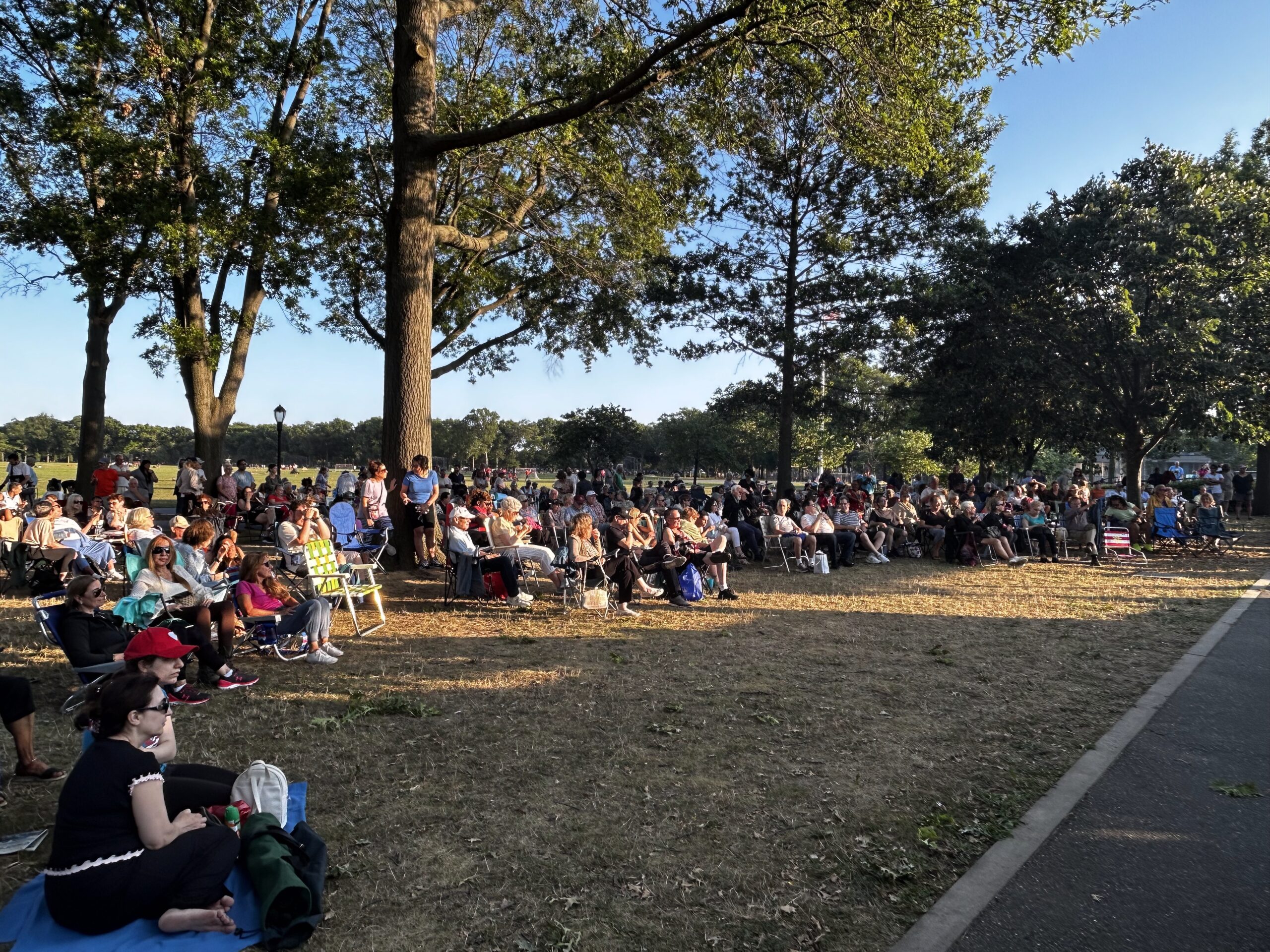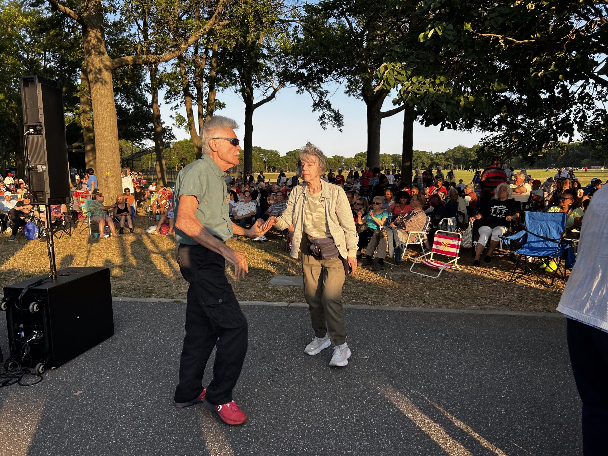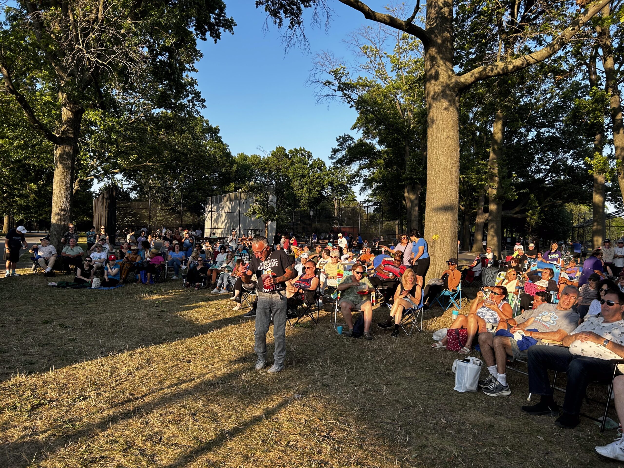 There was a decent size crowd gathering on the lawn in front of the bocce courts in Marine Park on Wednesday, July 23rd, before 6:30 p.m., the concert start time, in anticipation of Plastic Soul’s return to the stage. By 7 p.m., the park was packed with a crowd of concert-goers who came to hear Plastic Soul play the hits of the 60s and 70s. This is the fourth concert in a series of Marine Park summer concerts sponsored by Assemblywoman Jaime Williams.