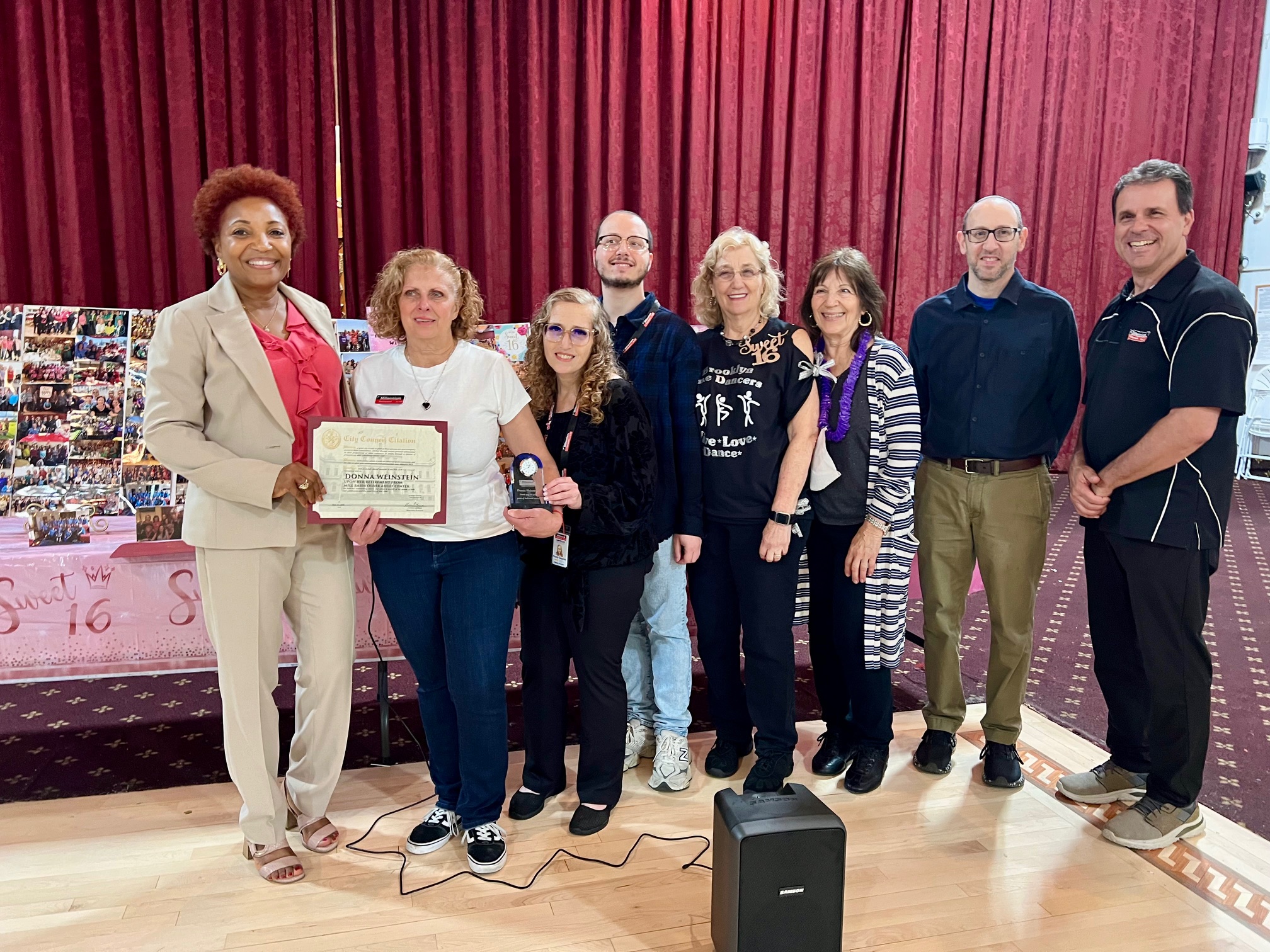 When everyone was seated for lunch, Millennium Development Executive Director Paul Curiale made a special presentation to not just congratulate Genduso, but to also announce the retirement of the Mill Basin Older Adults Center Director DonnaRae Weinstein, who will be replaced next week by Jonathan Turovets, who was the program director of the Marine Park Older Adults Center.
