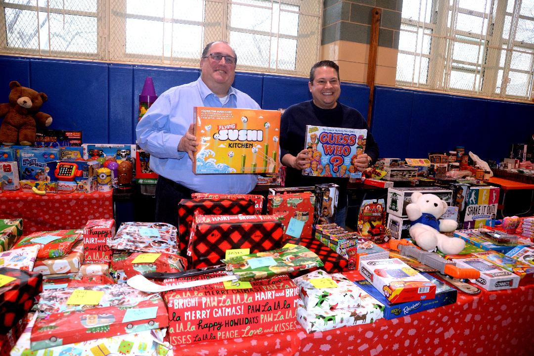 Neighborhood children and their parents, as well as many new arrivals to the city, filled the school’s gymnasium, at 1070 East 83rd Street. Children were mesmerized by the sight of the enormous display of decorations, multicolored balloons and life-size holiday posters. Every table and chair was filled as the cafeteria served as an overflow. All enjoyed the delicious food, desert, drinks and the large selection of snacks.