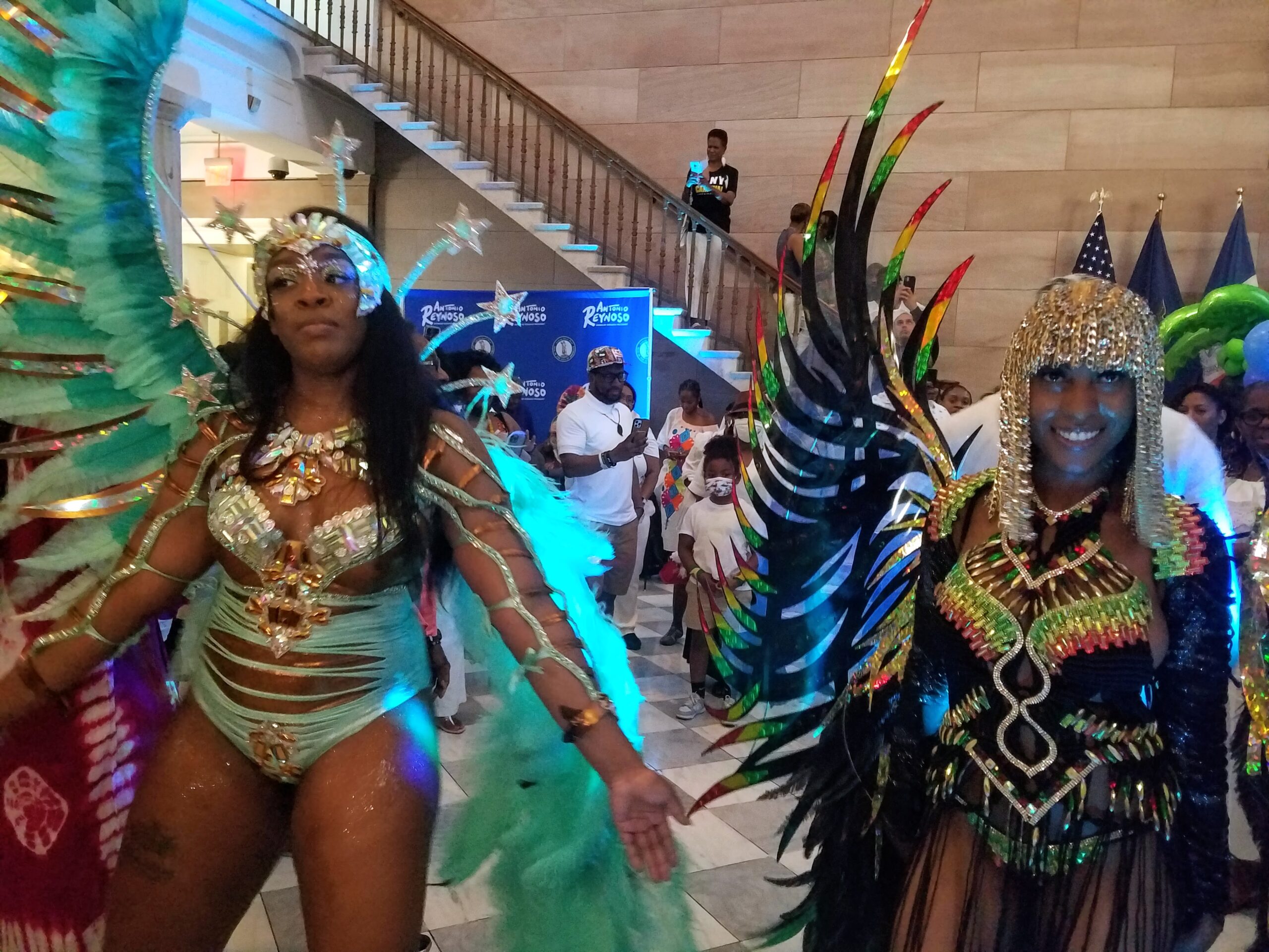 The month-long festivities wrapped up on June 30th. Brooklyn Borough President Antonio Reynoso and his deputy threw a soiree that included poetry reading, calypso singing, steel pan playing, colorfully dressed dancers on stilts and a pageantry of elaborate carnival costumes, paraded by Caribbean beauties. Richardson read the names of Caribbean countries, stressing at the end, “many countries, one Caribbean,” a sentiment echoed by both Reynoso and Haitian-born Councilwoman Narcisse, who attended the event. “She’s also from my island — Hispaniola,” Reynoso, whose family is from the Dominican Republic, announced proudly, as he invited the former nurse to say a few words. Narcisse who spoke in both English and French Creole, agreed, stating, “We may have our differences, but we are still one! One Caribbean!”