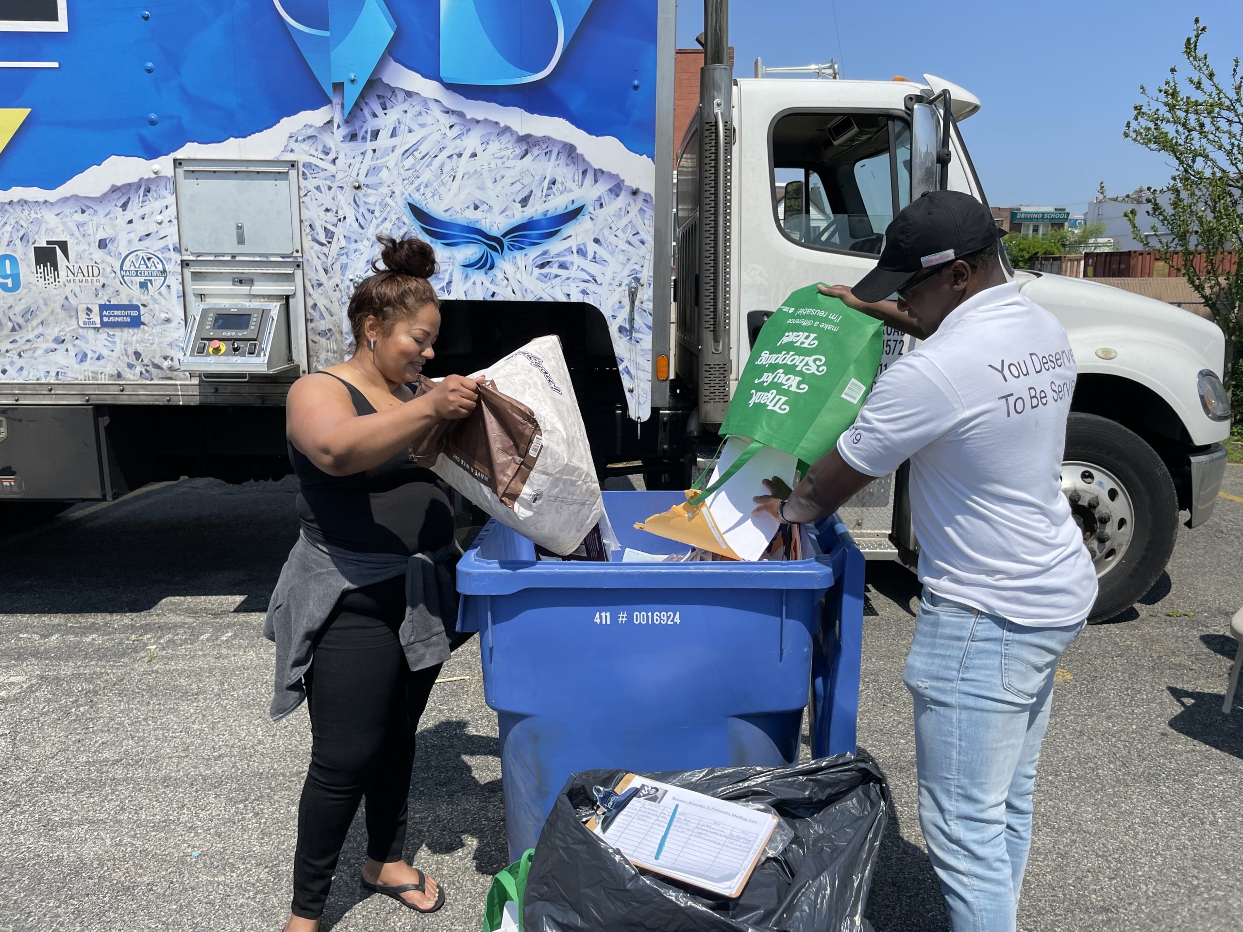 Despite the intense heat, locals gathered on Saturday afternoon in the parking lot near State Senator Roxanne Persaud’s District Office, 1222 East 96th Street, to continue their spring cleaning of unwanted papers and electronics.